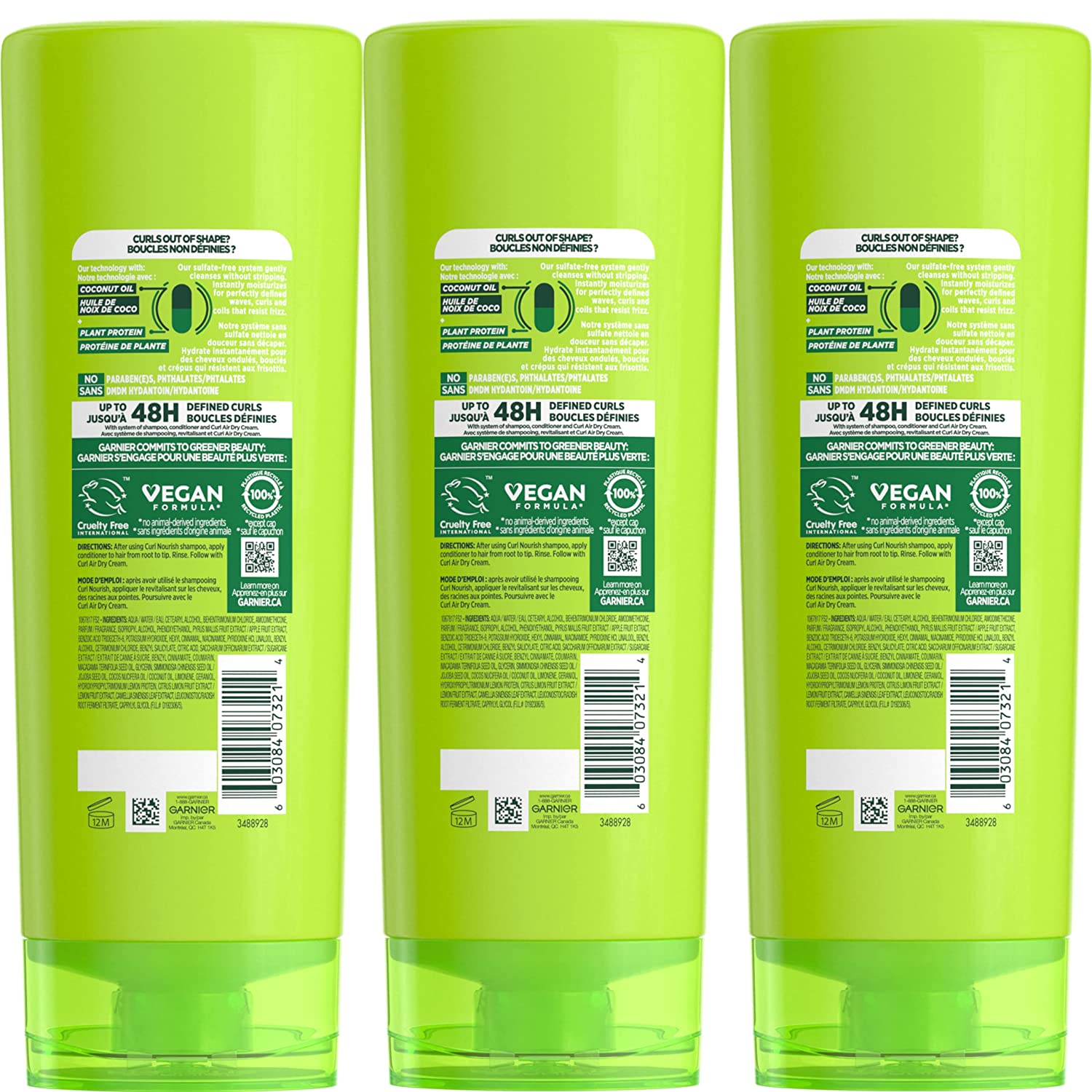 Garnier Fructis Curl Nourish Sulfate Free Moisturizing Conditioner, 12 Fl Oz, 3 Count (Packaging May Vary)