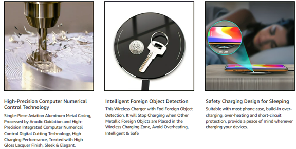 • 【LED Indicator Lights】 Changing color breath LED lights. Beautiful and lets you know when it's ready to charge, charging, and when your device is fully charged.