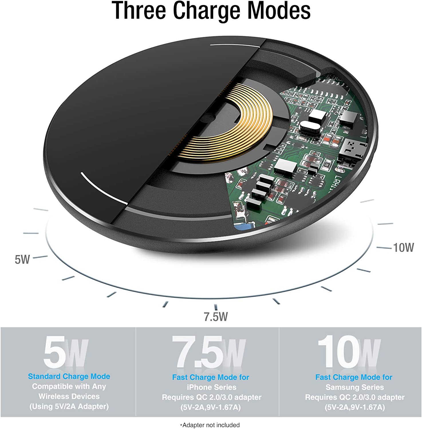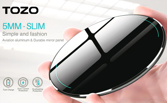 TOZO W1 Wireless Charger 10W Thin Aviation Aluminum Computer Numerical Control Technology Fast Charging Pad Black (NO AC Adapter)