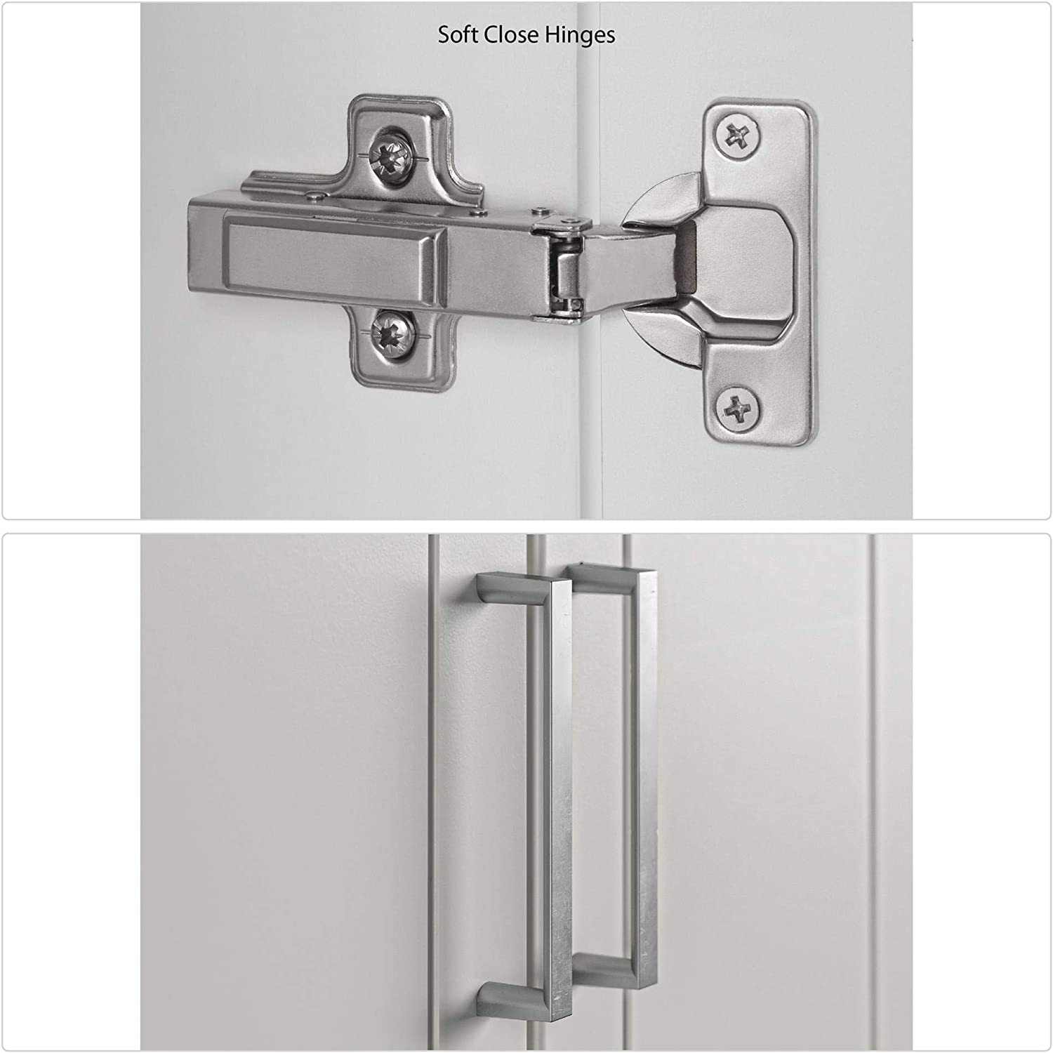 EZ Hang system gives you a level and sturdy hang on the first try. Soft closing hinges prevent slamming doors.