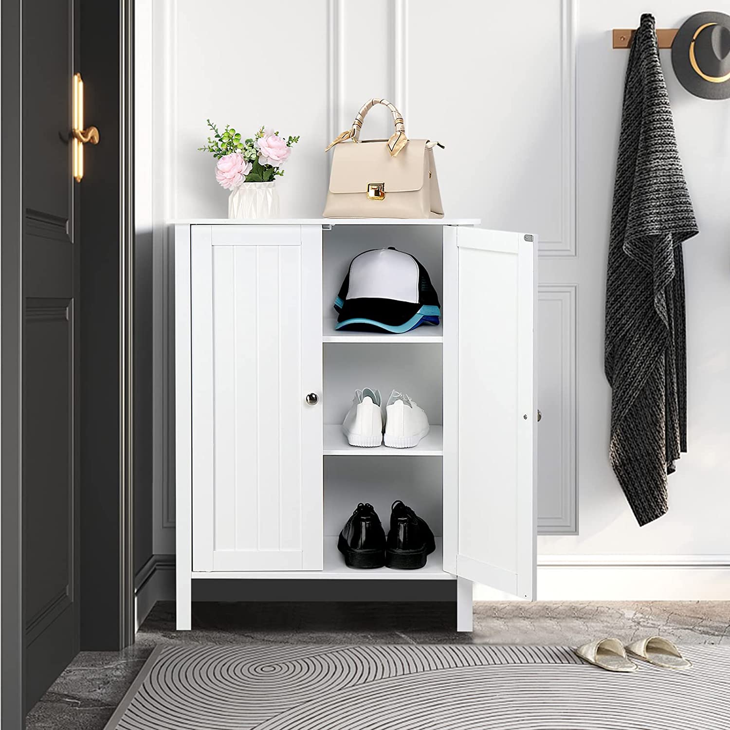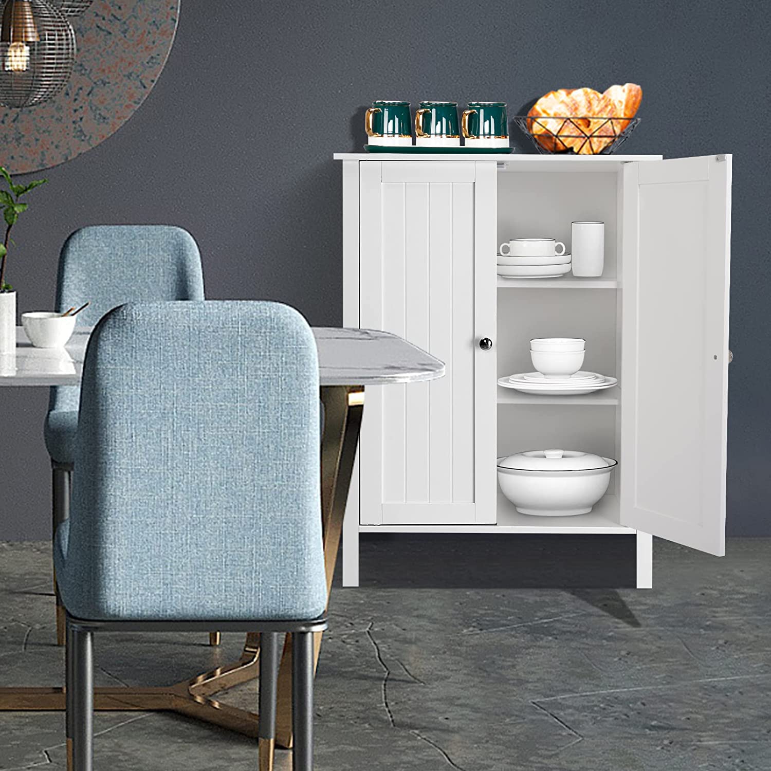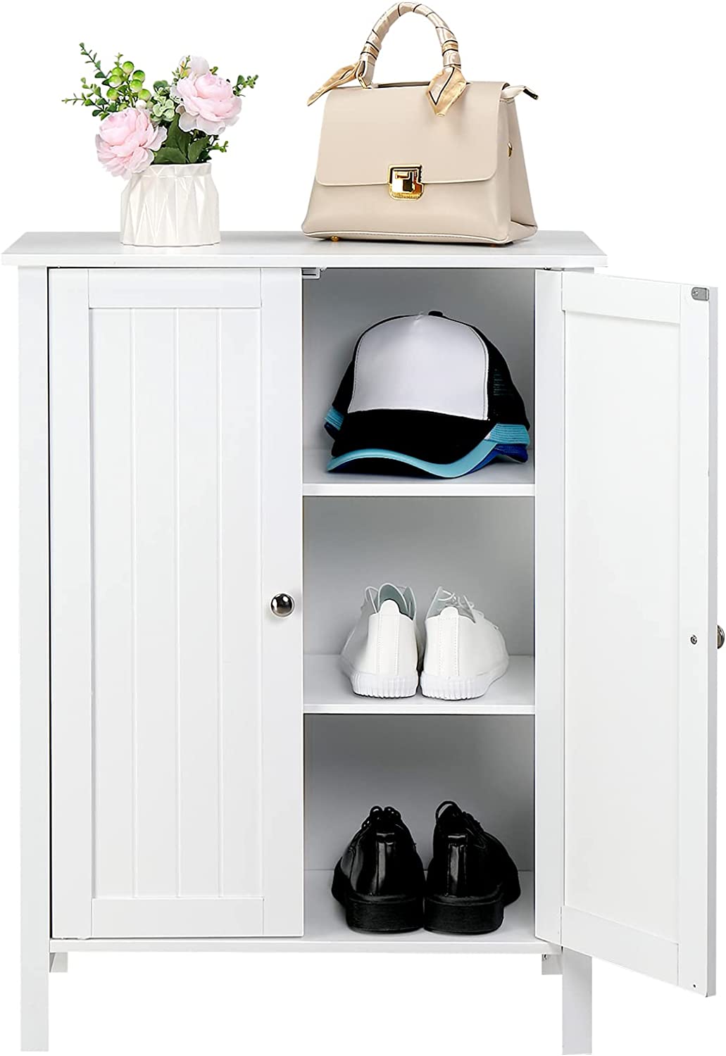 Bonnlo Bathroom Cabinet Free Standing Floor Storage with Double Door Adjustable Shelf Space Saver Decorative Modern Bathroom Furniture White