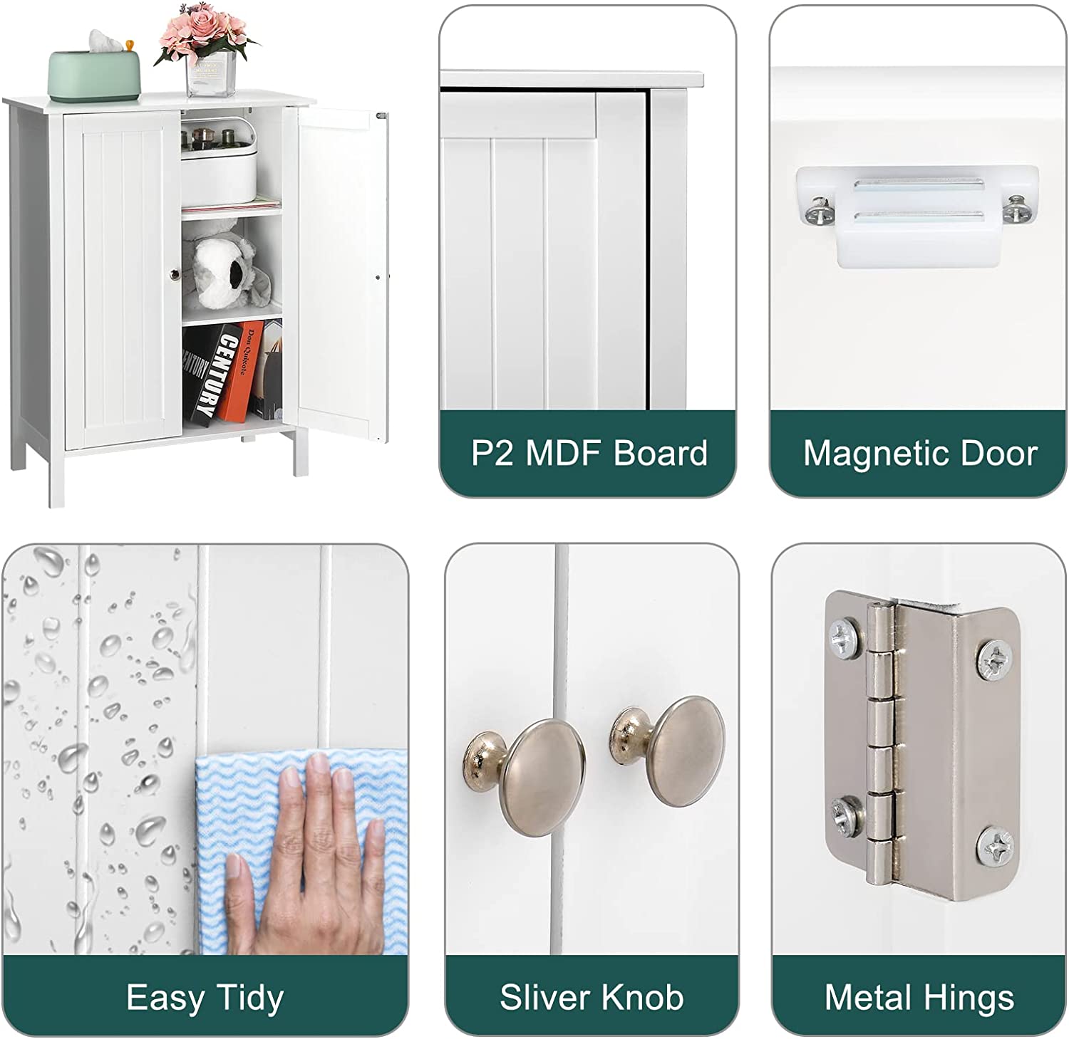 • 【Selected Material】--This standing cabinets with doors is constructed of durable upgraded P2 MDF( Medium Density Fiberboards) prevents moisture & water-resistant wooden material is suitable for humid environment, to keep your items and for long-term use