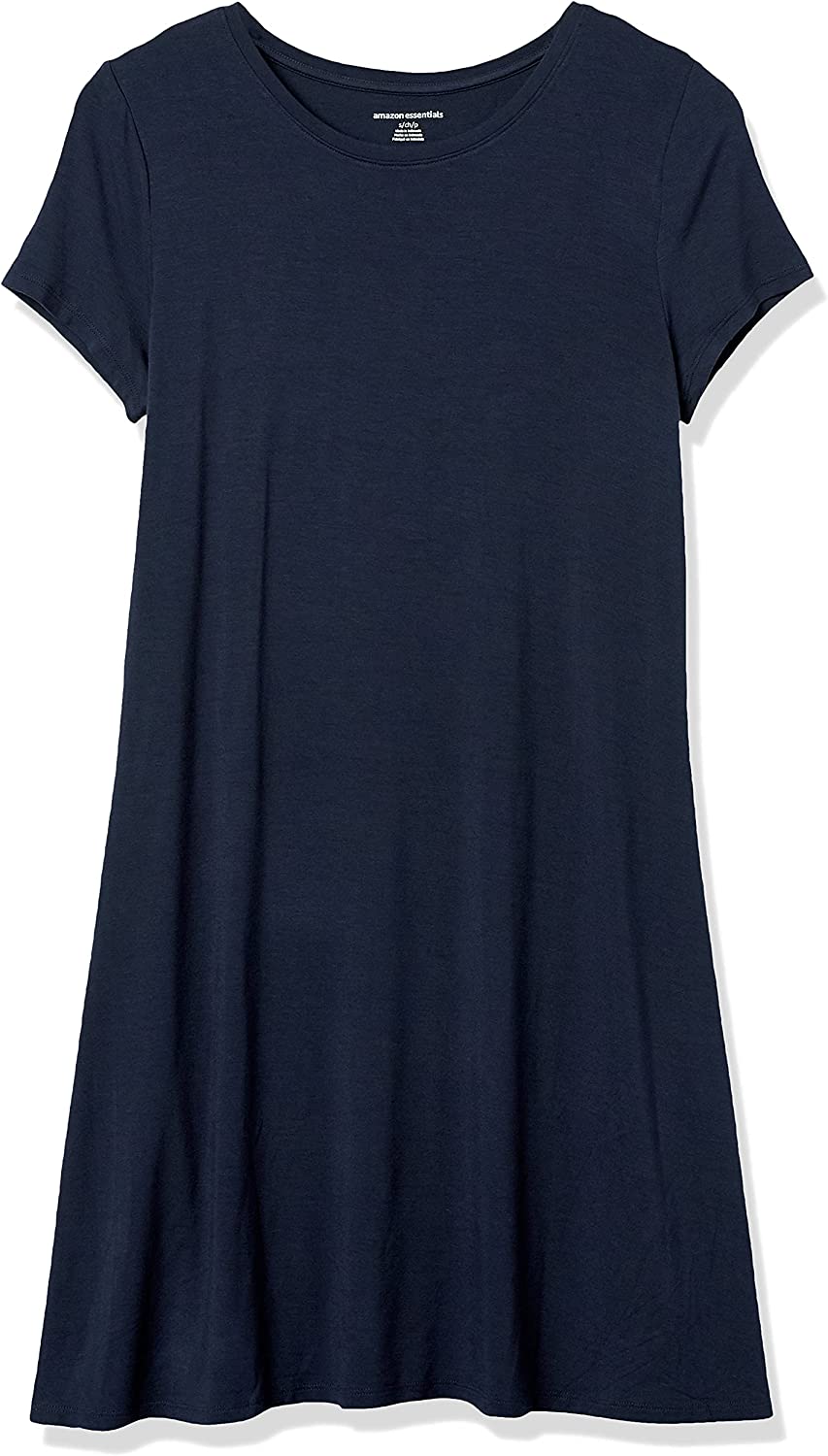 Amazon Essentials Women's Short-Sleeve Scoop Neck Swing Dress (Available in Plus Size)