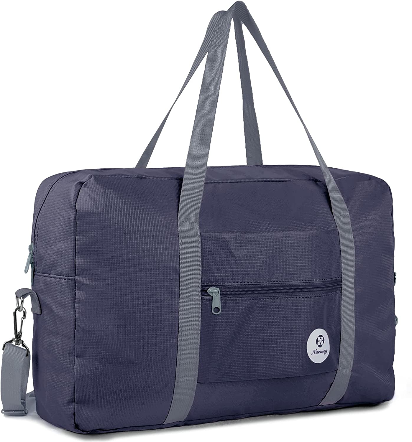 Narwey For Spirit Airlines Foldable Travel Duffel Bag Tote Carry on Luggage Sport Duffle Weekender Overnight for Women and Girls (3112 Dark Blue ( with Shoulder Strap))