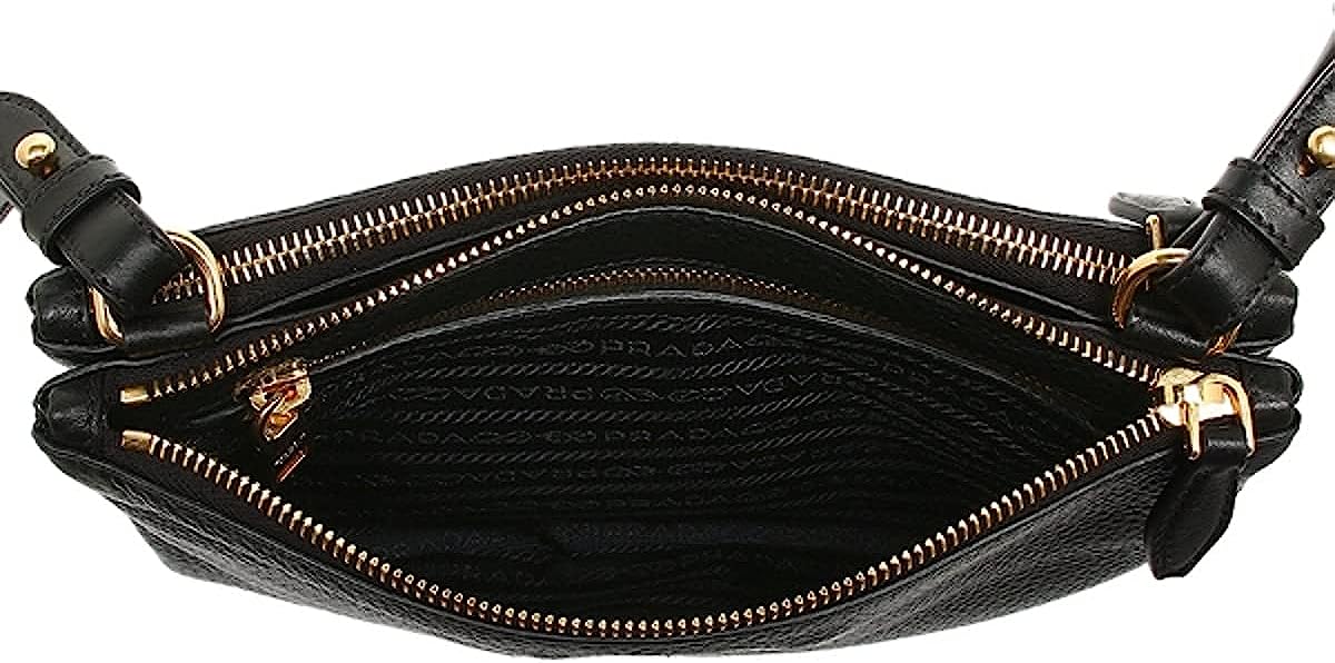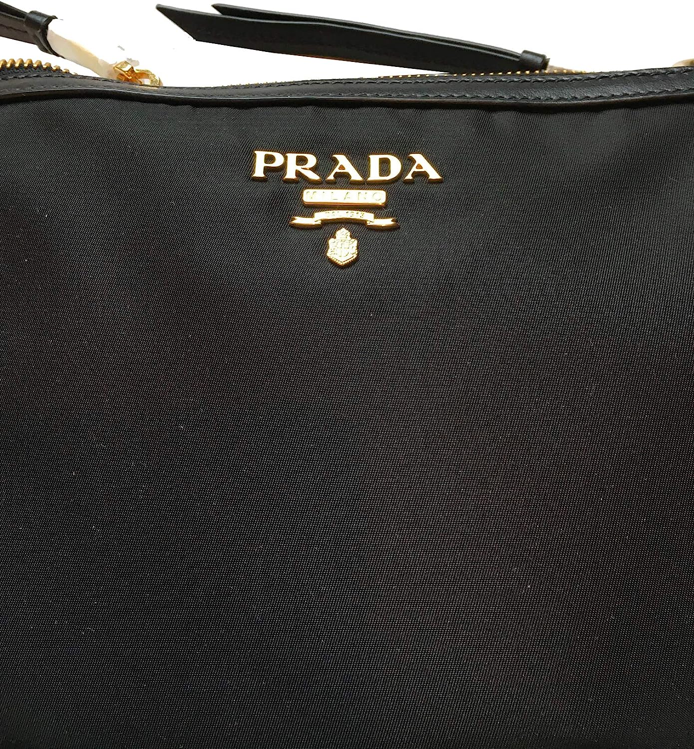 Prada Bandoliera Tessuto Nylon Soft Calf Trim Black Crossbody Bag 1BH046