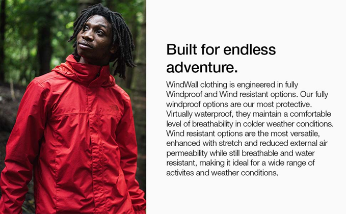 Material: [front body] WindWall (150D polyester), DWR coating, [back body, underside of sleeves, panels] 150D polyester