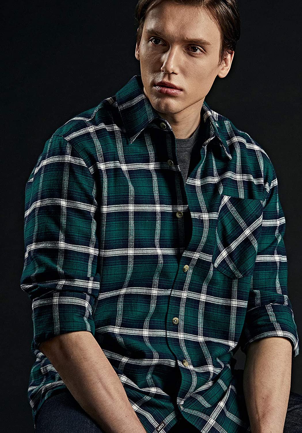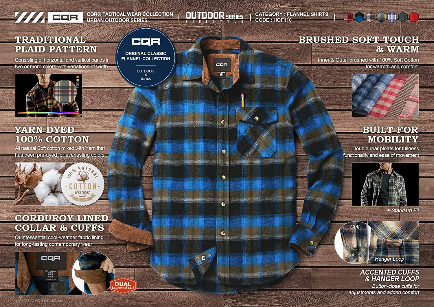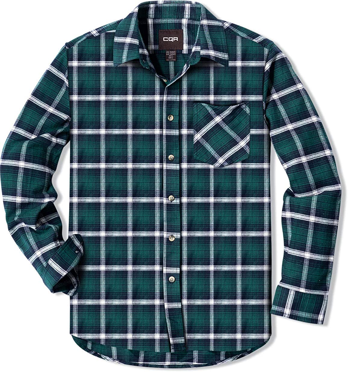 CQR Men's All Cotton Flannel Shirt, Long Sleeve Casual Button Up Plaid Shirt, Brushed Soft Outdoor Shirts