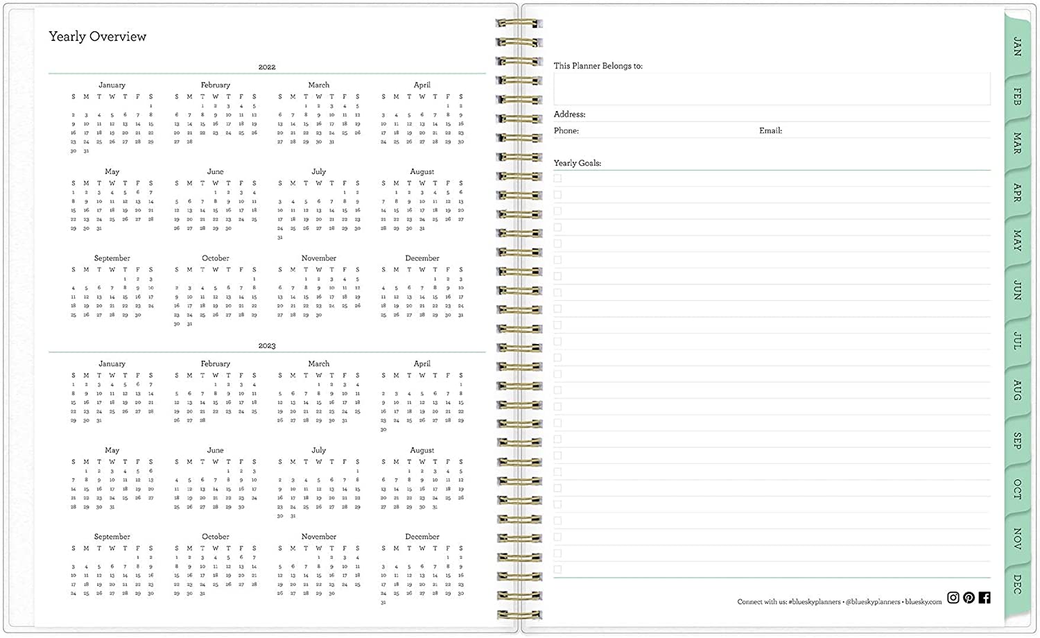 Bring order to your busy life with the Laurel Planner and its springtime motif to give your schedule a fresh start. Thick, premium-quality pages reduce ink bleed-through to ensure your writing stays legible. Two-page-per-week spread features ruled, daily blocks for easy handwriting. Monthly view per two-page spread includes a notes section for important projects. Monthly tabs are coated for durability. Durable, frosted flexible front cover keeps your pages protected throughout the entire year. Double-wire binding allows easy page-turning. Six bonus monthly views allow you to make easy yearly transitions. Planner also includes pages for yearly goals, contacts, reference calendars and extra notes pages. 12-month planner ranges from January to December.