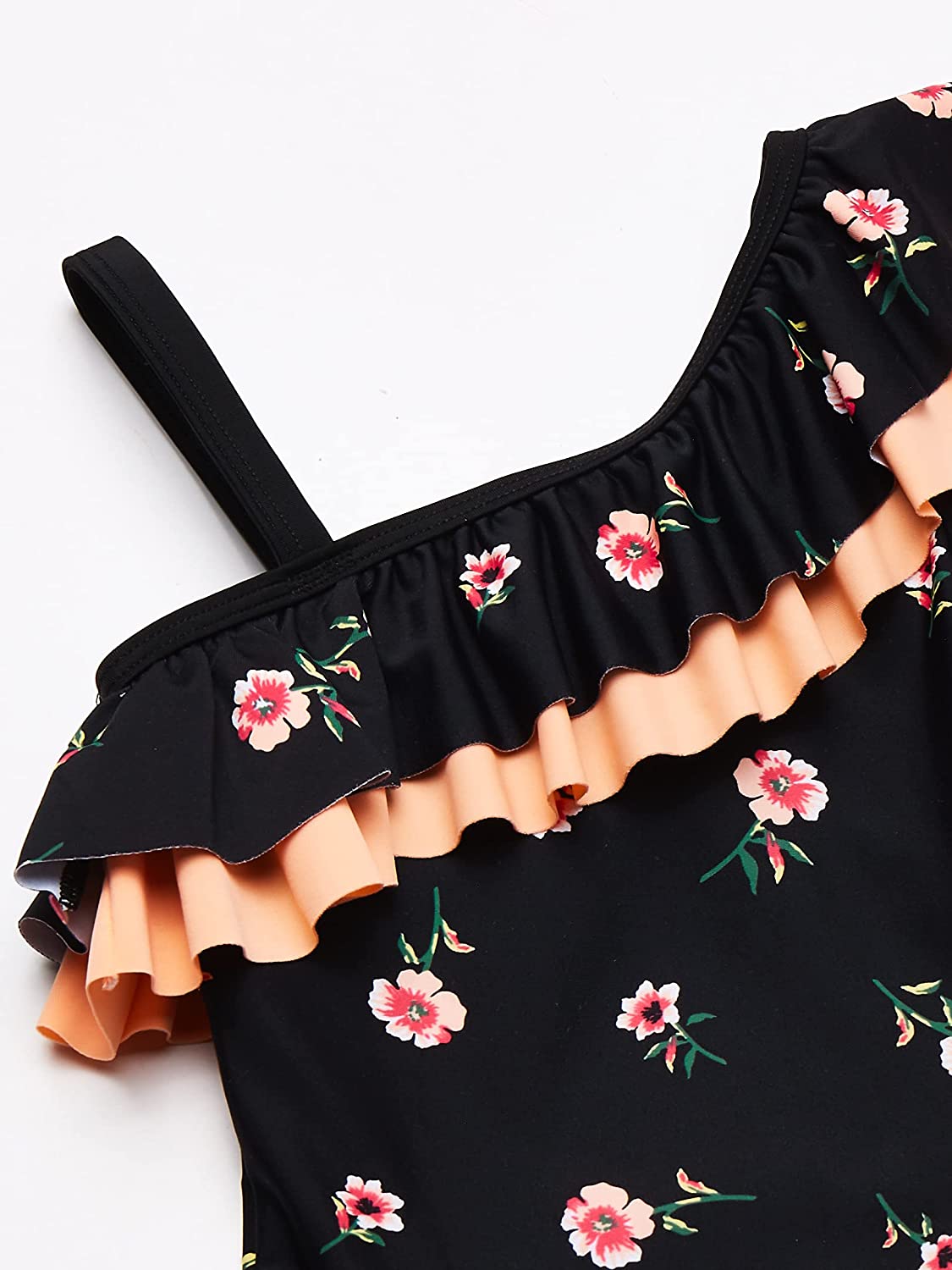 Kanu Surf Girls' Morgan Floral Ruffle 1-Shoulder 1-Piece Swimsuit