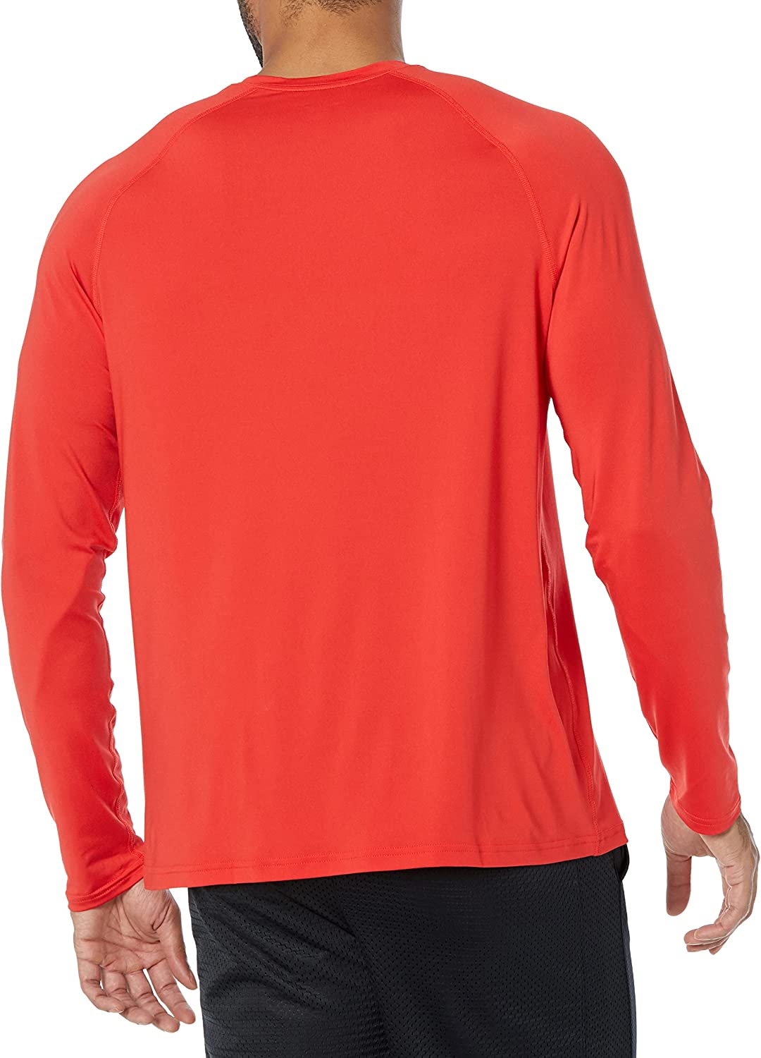 A bit of stretch and accent seams add comfort and style to this essential long-sleeve t-shirt featuring tech-stretch fabrication and moisture wicking capability
