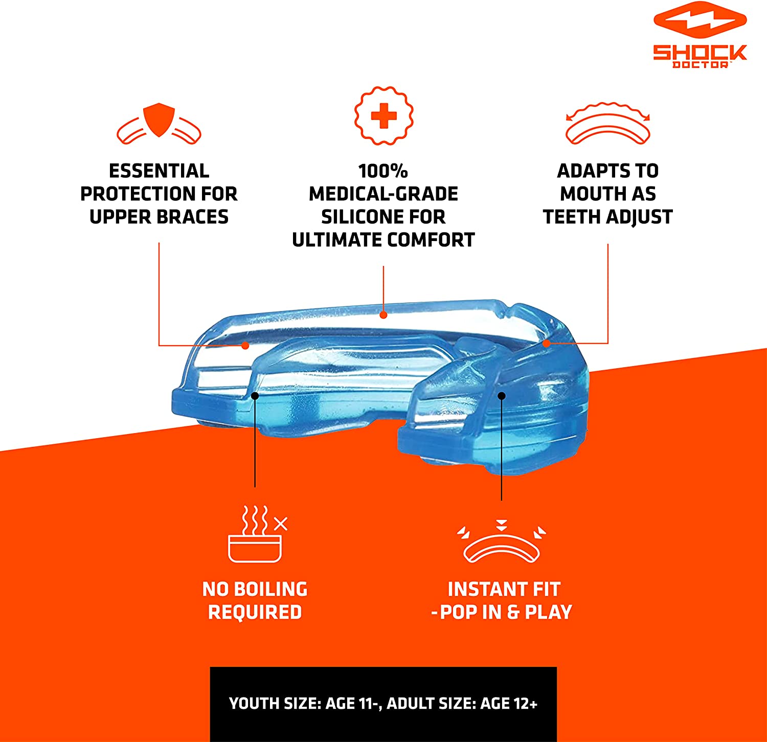 Shock Doctor Double Braces Mouth Guard. Upper and Lower Teeth Protection. Mouthguard No Boil / Instant Fit. For Youth, Teenager, Kids and Adults. Mouth Piece OSFA