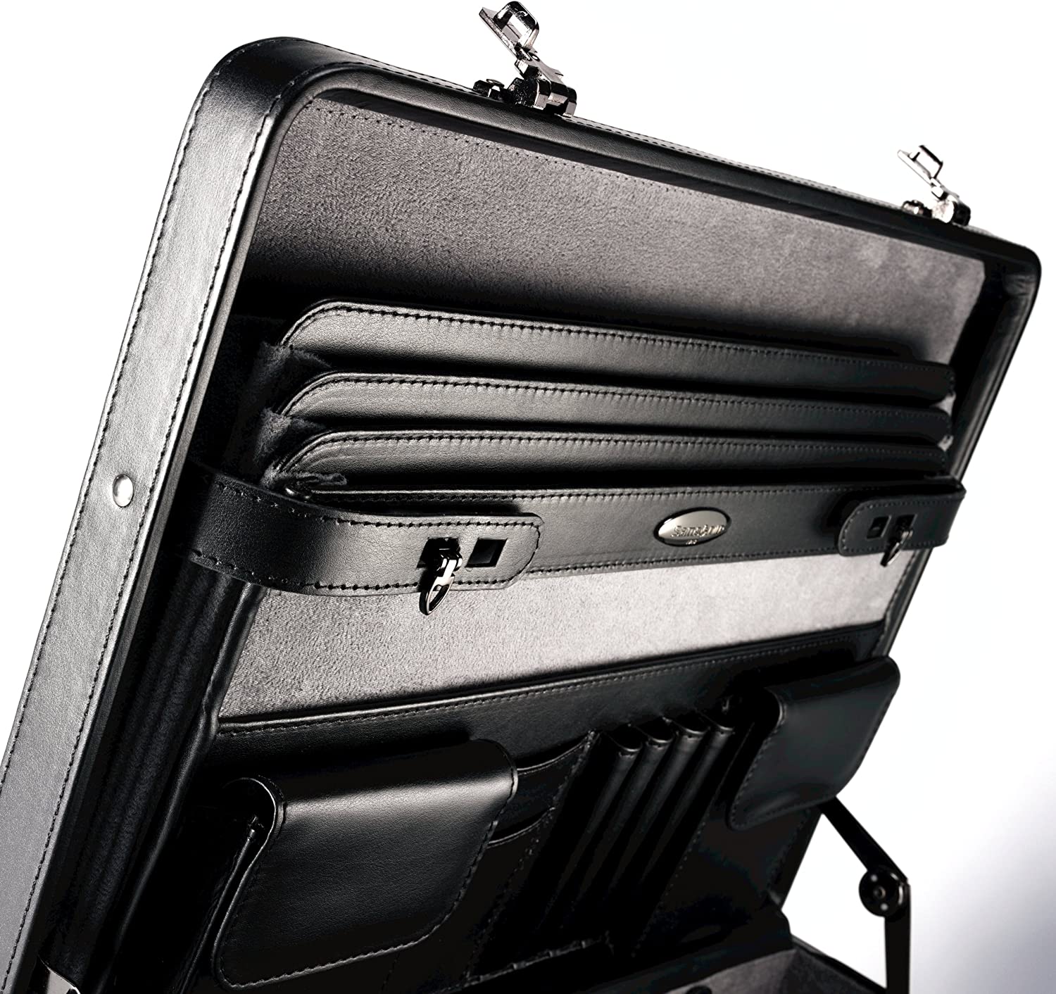Samsonite Carrying Case (Attached) for Document - Black - Leather. Body dimension: 17.875 x 13 x 4.25 inches, Overall Dimension: 17.87 x 14.25 x 4.25 inches.