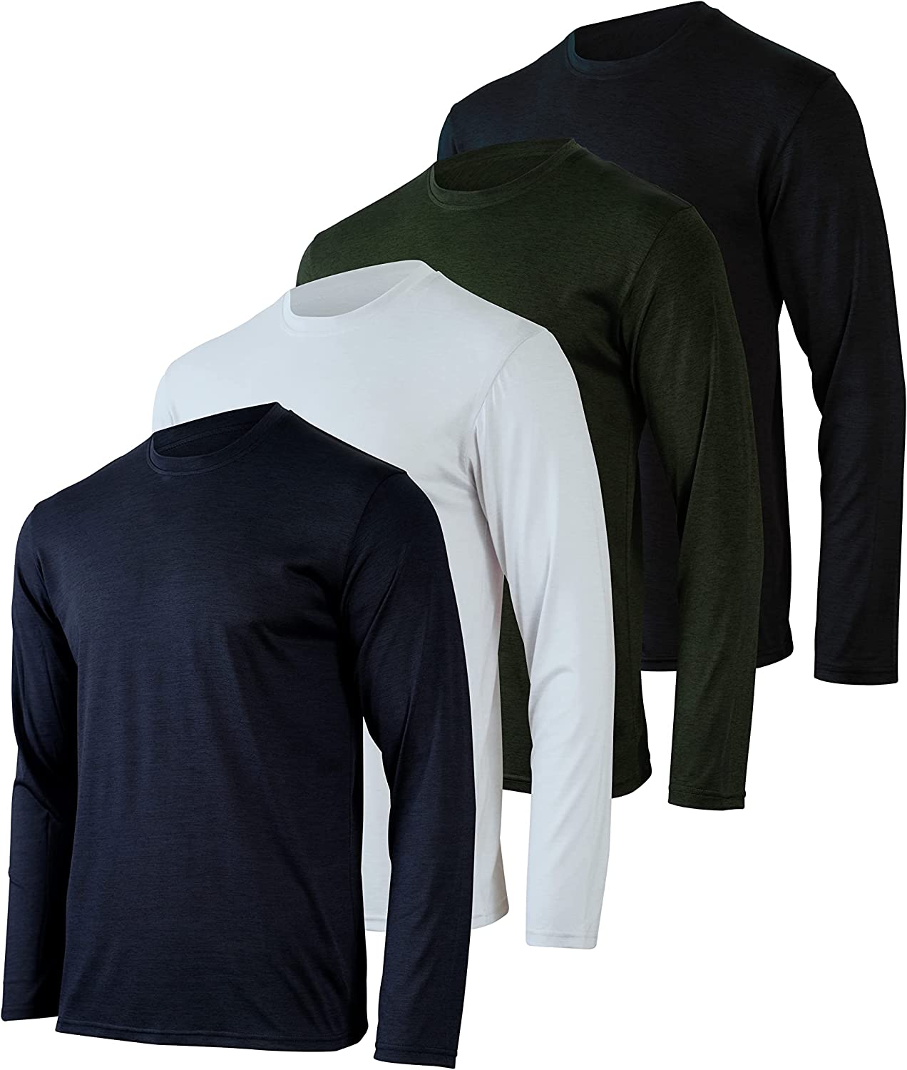 4 Pack: Men's Dry-Fit Moisture Wicking Performance Long Sleeve T-Shirt, UV Sun Protection Outdoor Active Athletic Crew Top