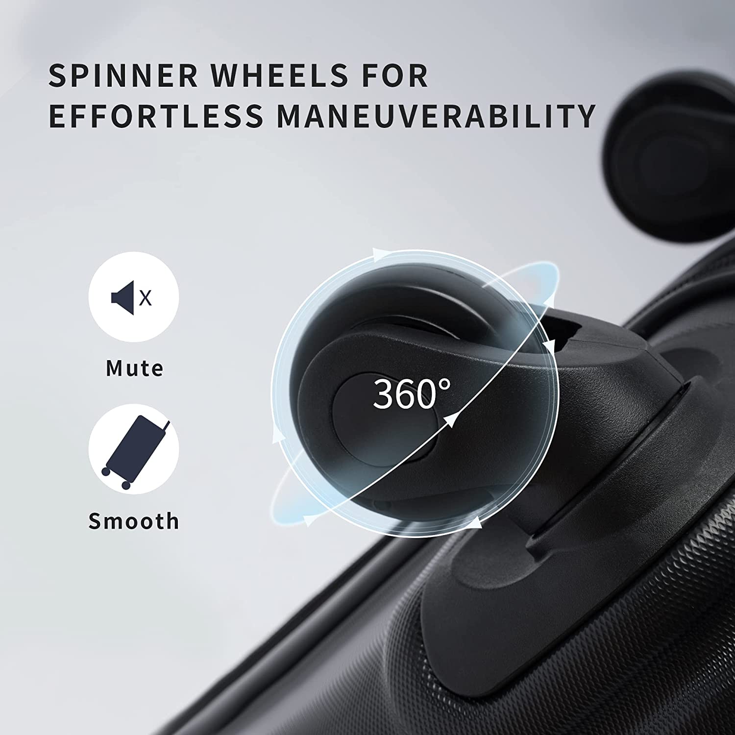 • Smooth 360° spinner wheels for impressive mobility and maneuverability. Top and side carrying handles available.