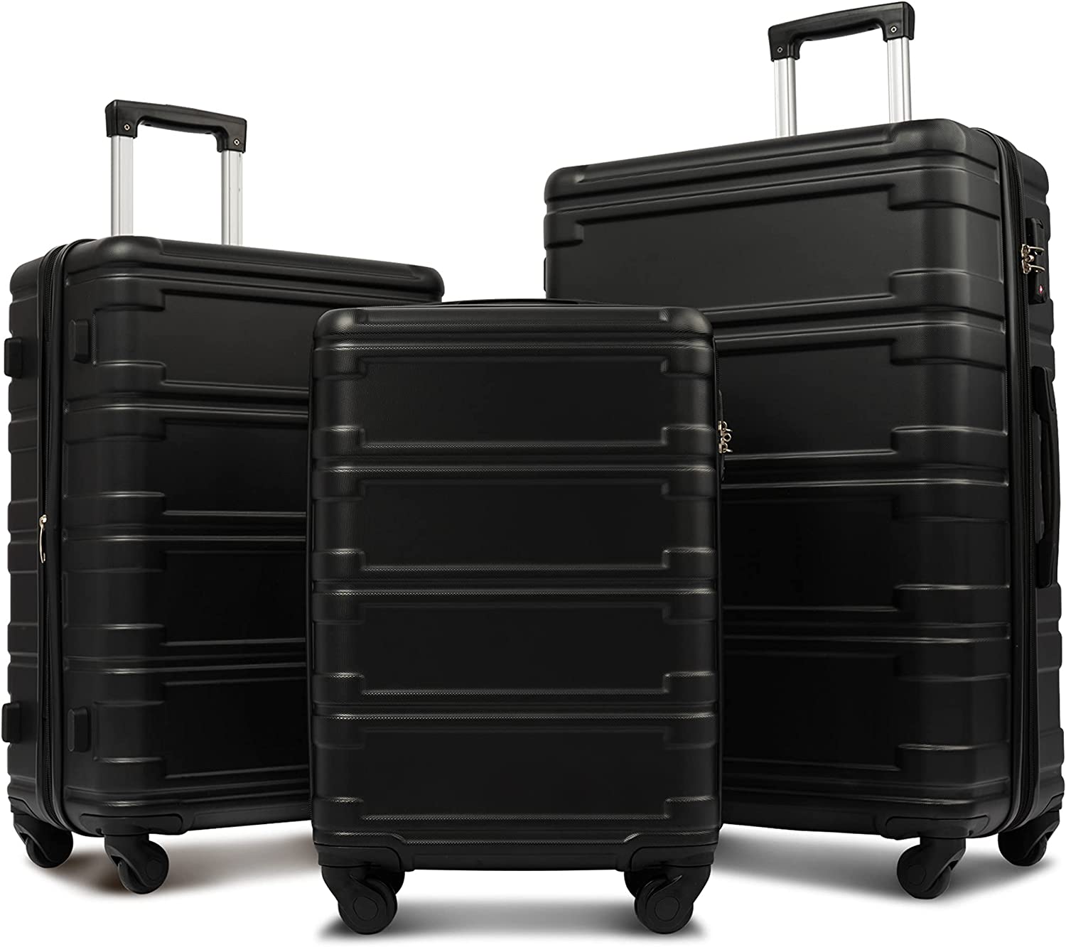Merax 3 Pcs Luggage Set Expandable Hardside Lightweight Spinner Suitcase with TSA Lock [Upgraded Version], Black