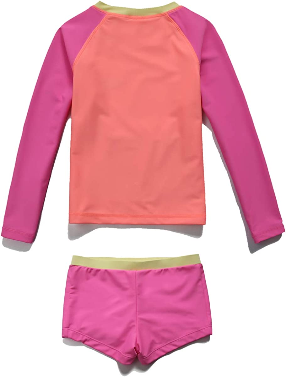 PHIBEE Girls' Rash Guard Set Long Sleeve UPF 50+ Sun Protection Two-Piece Swimwear