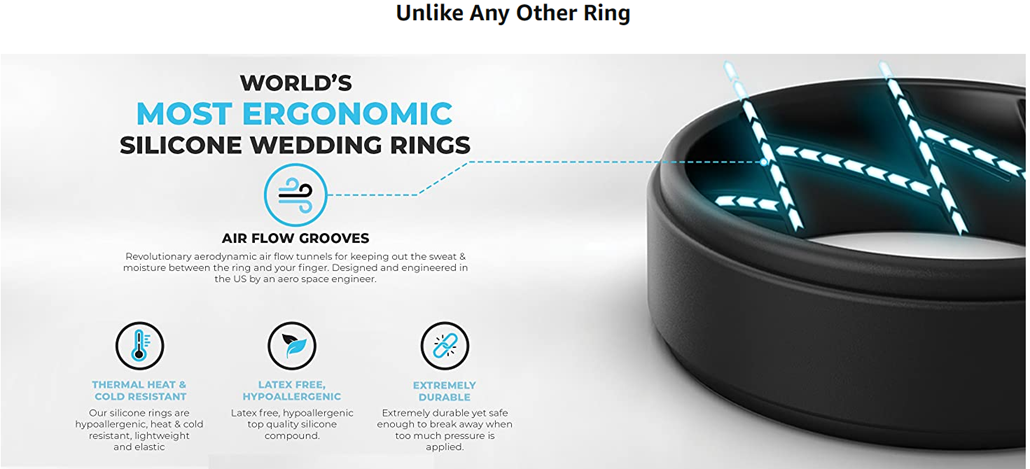• TOP GRADE, HYPOALLERGENIC, FLEXIBLE SILICONE – Durable, yet flexible. Designed to break away when too much pressure is applied. The flexibility of this ring makes it also perfect for those with large knuckles or temporary swollen fingers.