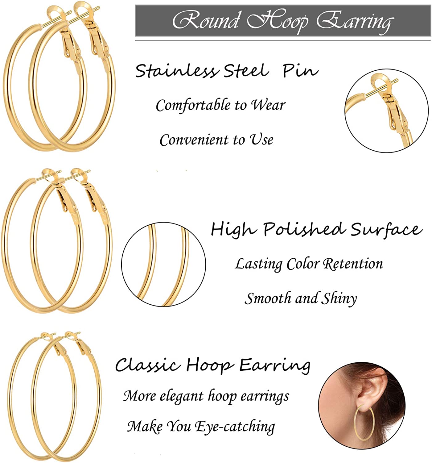 • ❤ EYE-CATCHING ❤ Hoop earrings will catch your audience's eyes even you have long hair. Hoop earrings are the perfect addition to a more casual look if you want to dress up a simple jeans or t-shirt. Imagine wearing them yourself, you will see why hundreds of our customers LOVE them since day 1. Together with your smile, you are irresistible