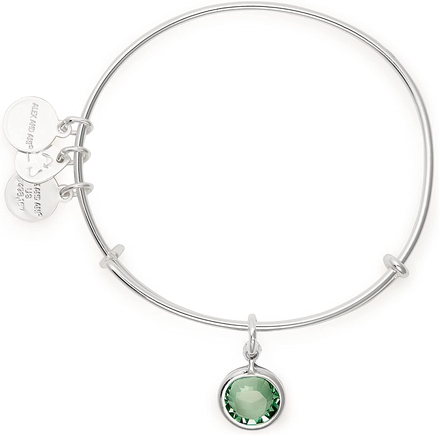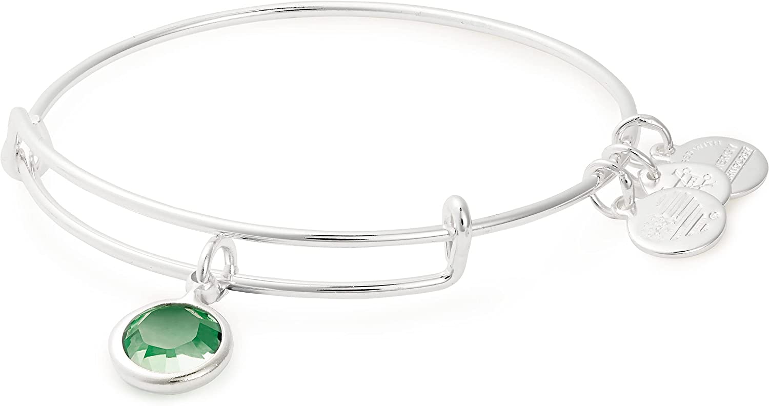 Alex and Ani Birthstones Expandable Bangle for Women, Crystal Charm for Every Month, Shiny Finish, 2 to 3.5 in