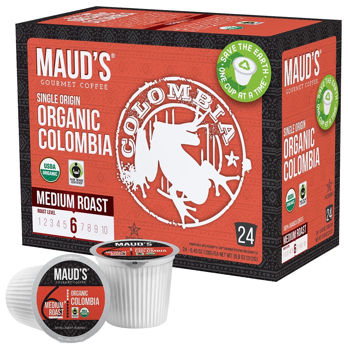 Maud's Organic Colombian Coffee (Organic Medium Roast Coffee), 24ct. Solar Energy Produced Recyclable Single Serve Fair Trade Single Origin Organic Coffee Pods - 100% Arabica Coffee, KCup Compatib