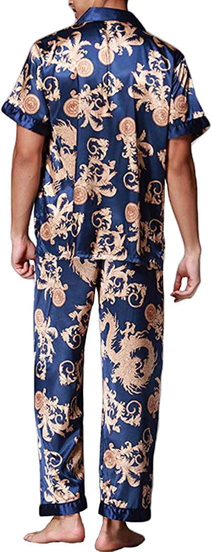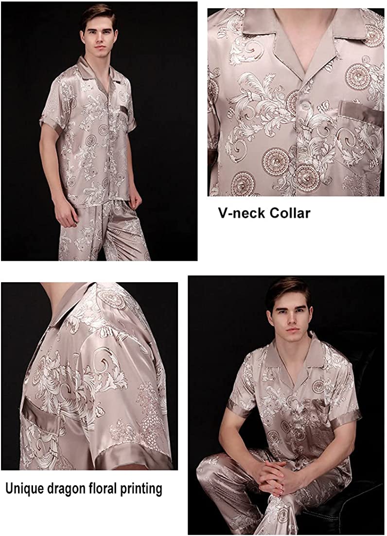 Materials:Silk stain,mens pajamas set is made of lightweight silk like satin, soft,breathable and skin-friendly, help you have a sound sleep.