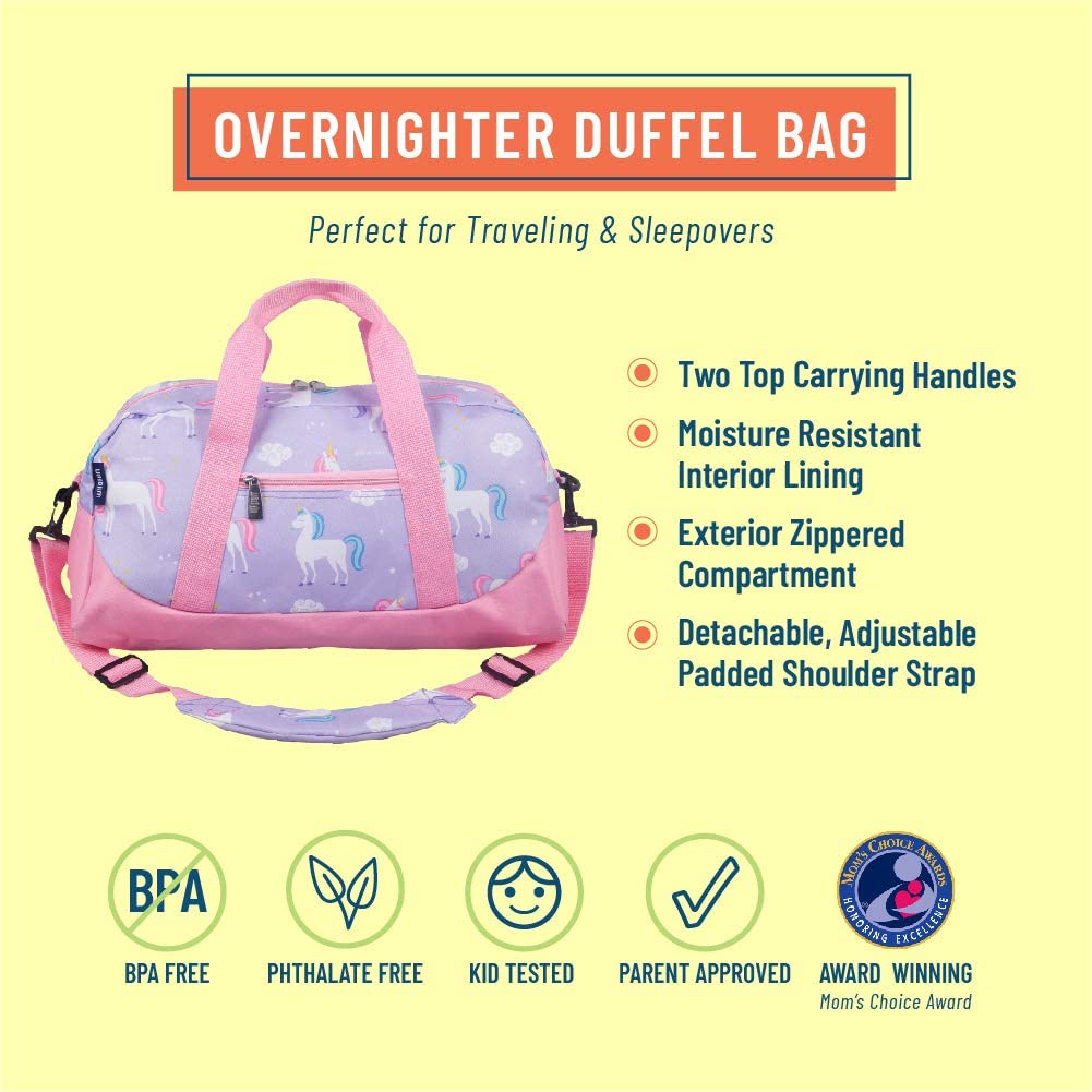 Wildkin Kids Overnighter Duffel Bags for Boys & Girls, Perfect for Sleepovers and Travel Duffel Bag for Kids, Carry-On Size & Ideal for School Practice or Overnight Travel Bag (Unicorn)