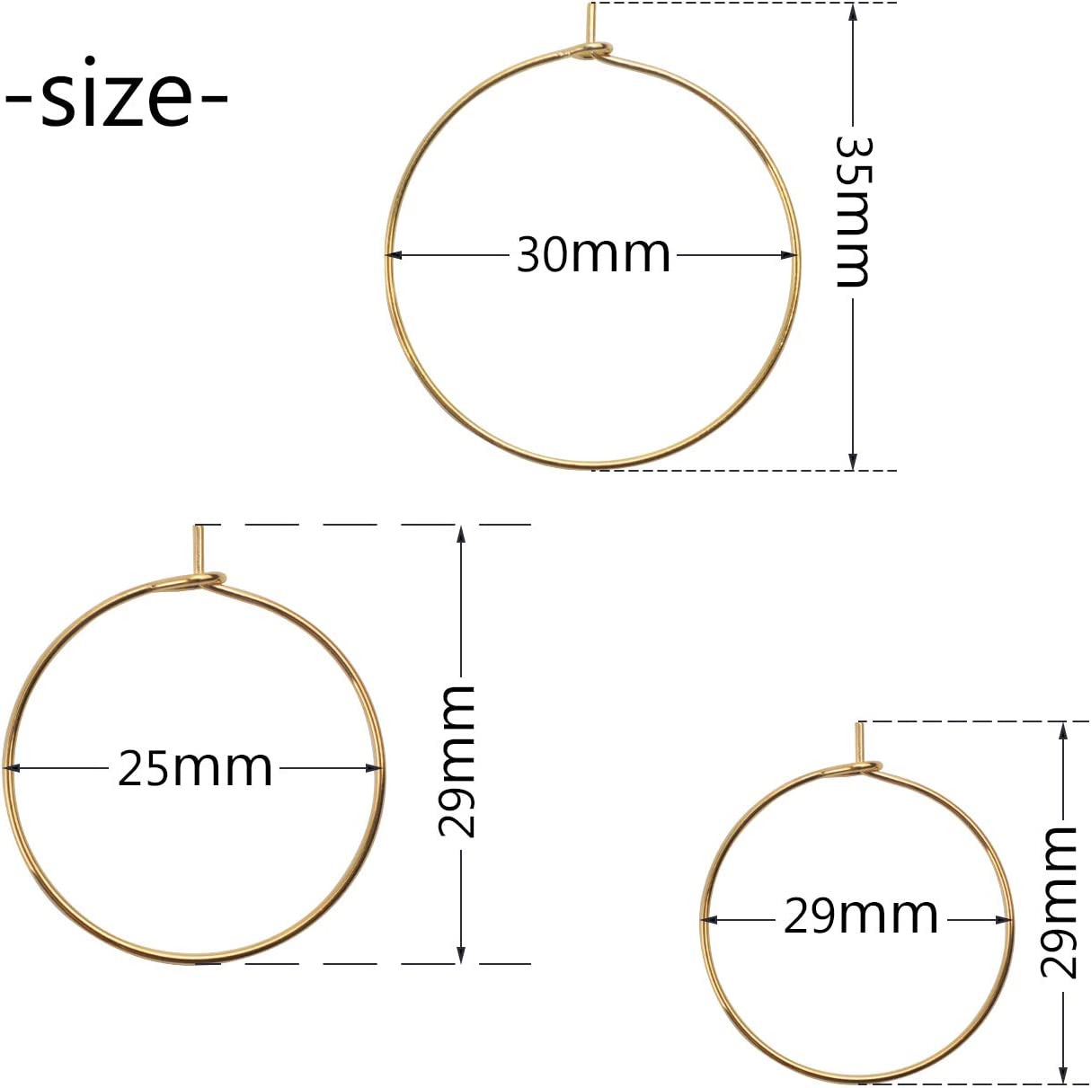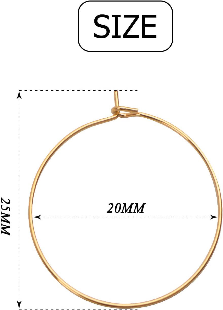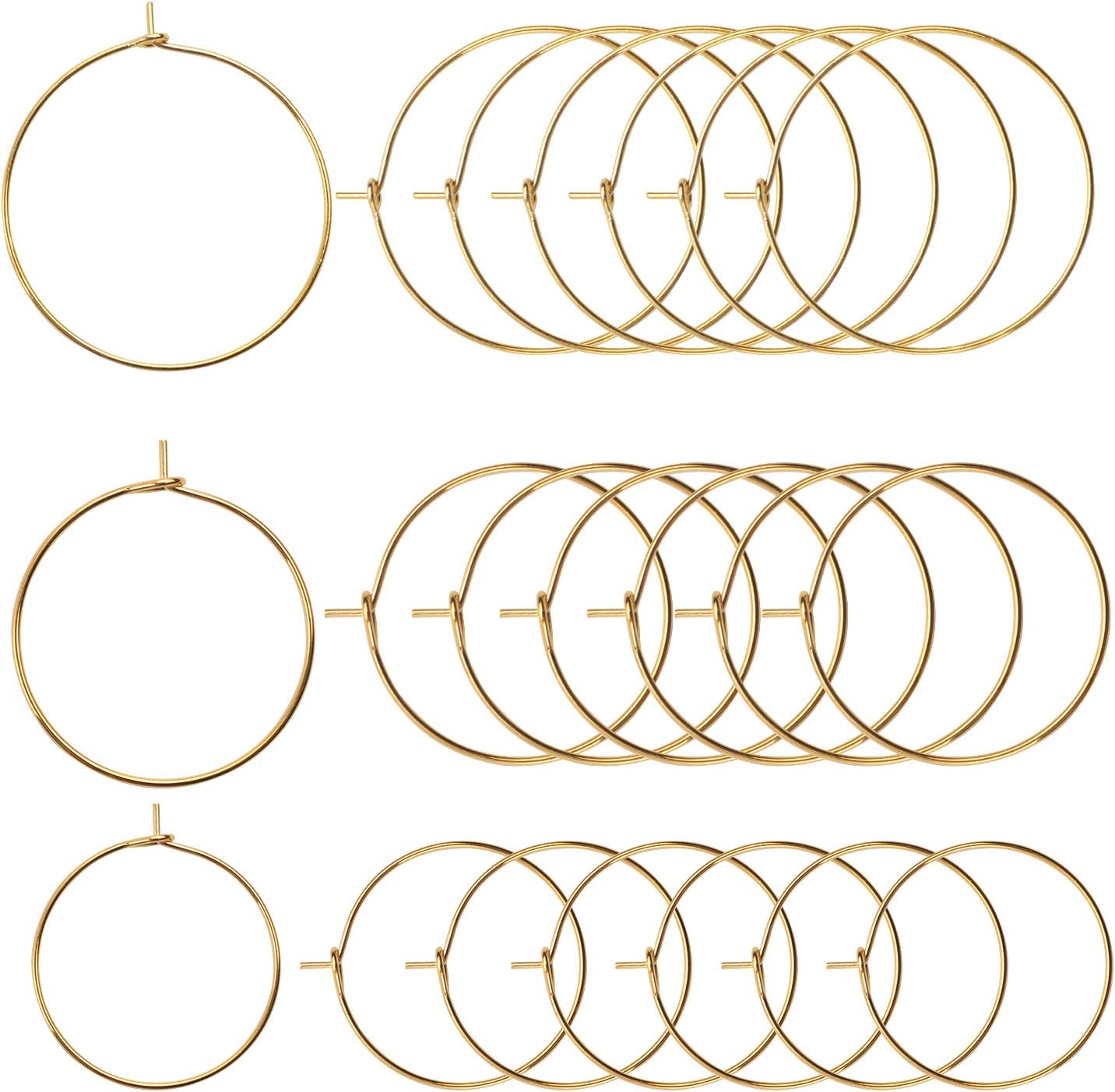 BronaGrand 150 Pieces Gold Plated Wine Glass Charm Rings Earring Hoops 3 Sizes,30mm,25mm,20mm