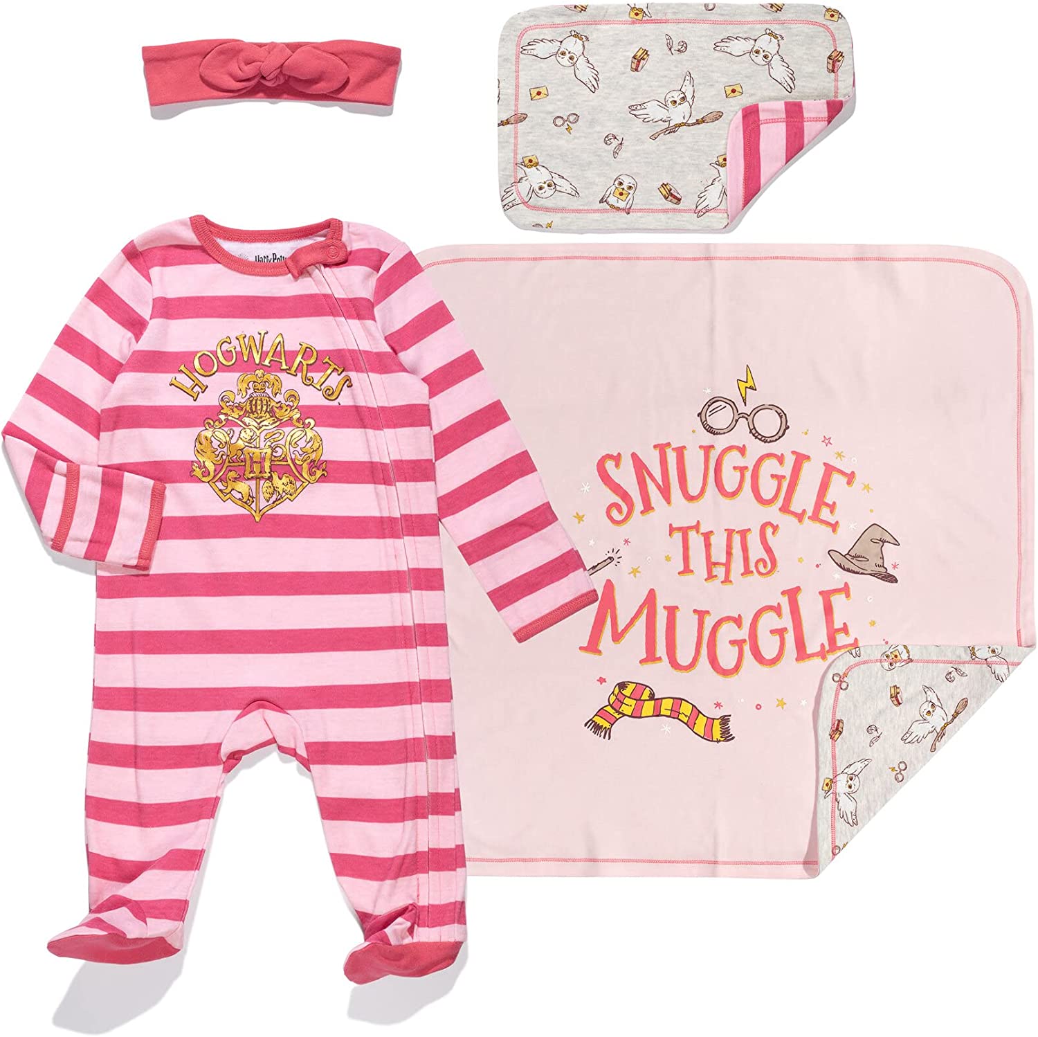 • Officially licensed Harry Potter Warner Bros. unisex newborn and infant 4 piece mix n’ match clothing set: cute and stylish long sleeve sleep n' play one-piece coverall, bibs, and blanket