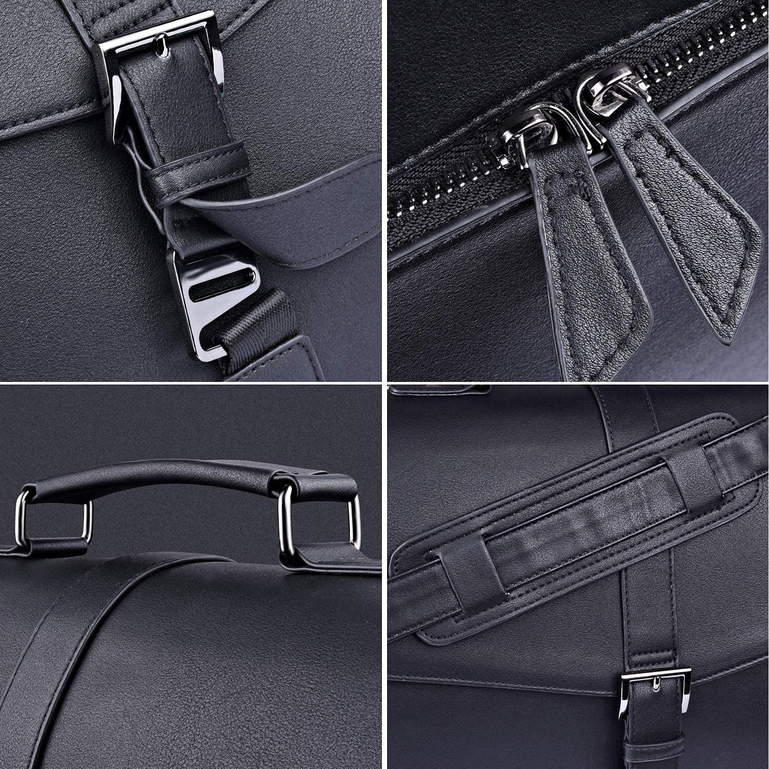 - High Quality Material: Vegan leather (pu leather), water-resistant. Briefcase size:17"(L)*4.5"(W)*12.5"(H). Strap length: max 62inch , min 20inch. Strap width: 1.2inch. Weight: 1.4kg, 3.09lb.