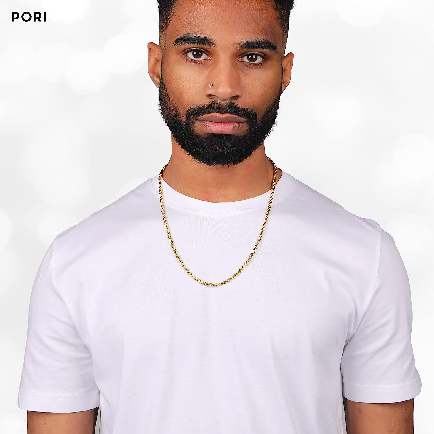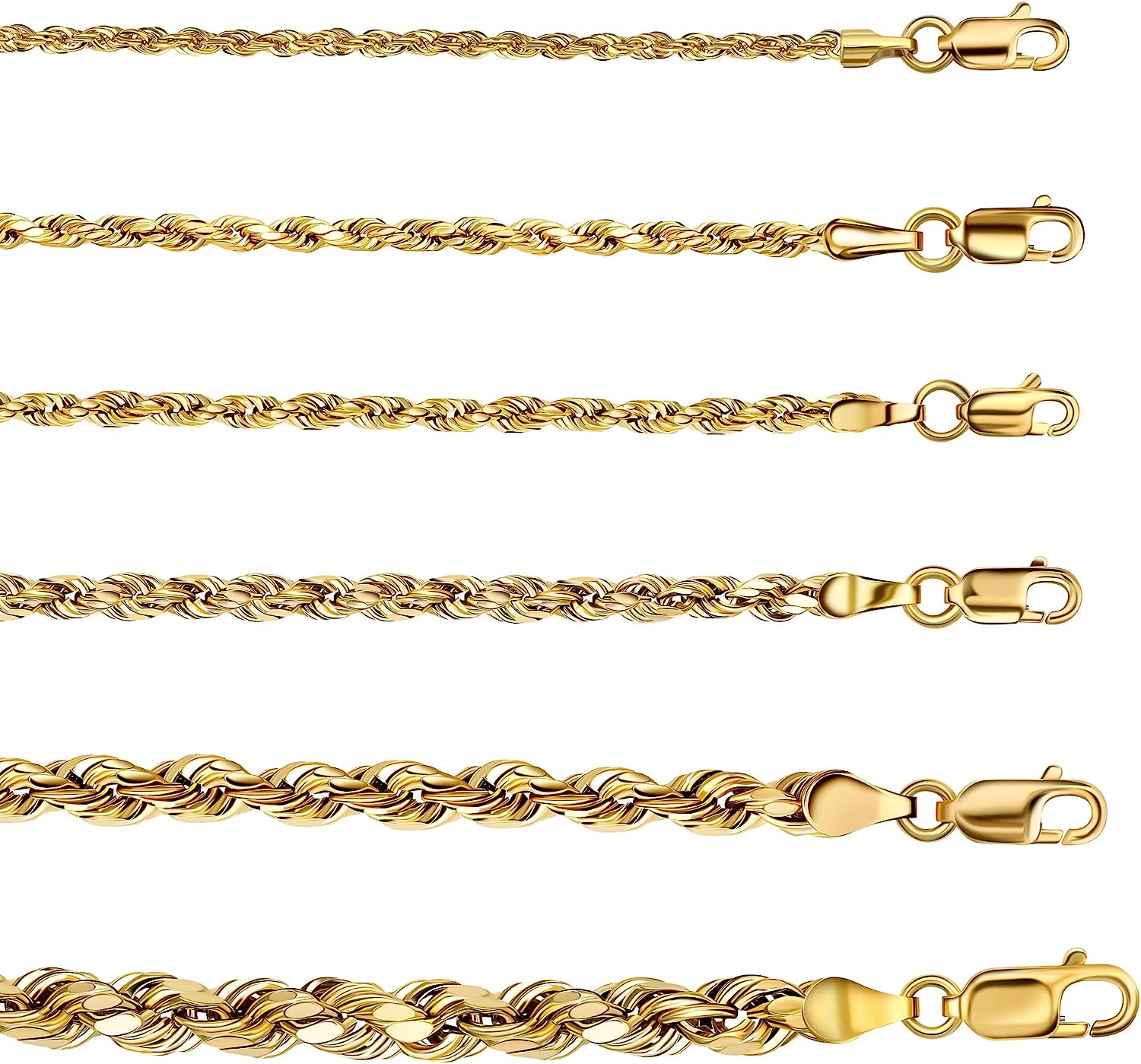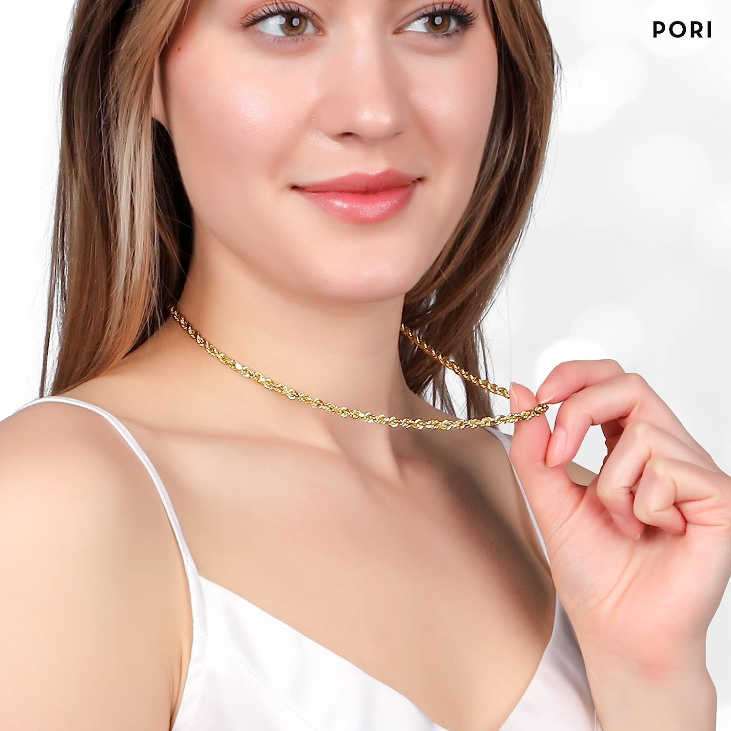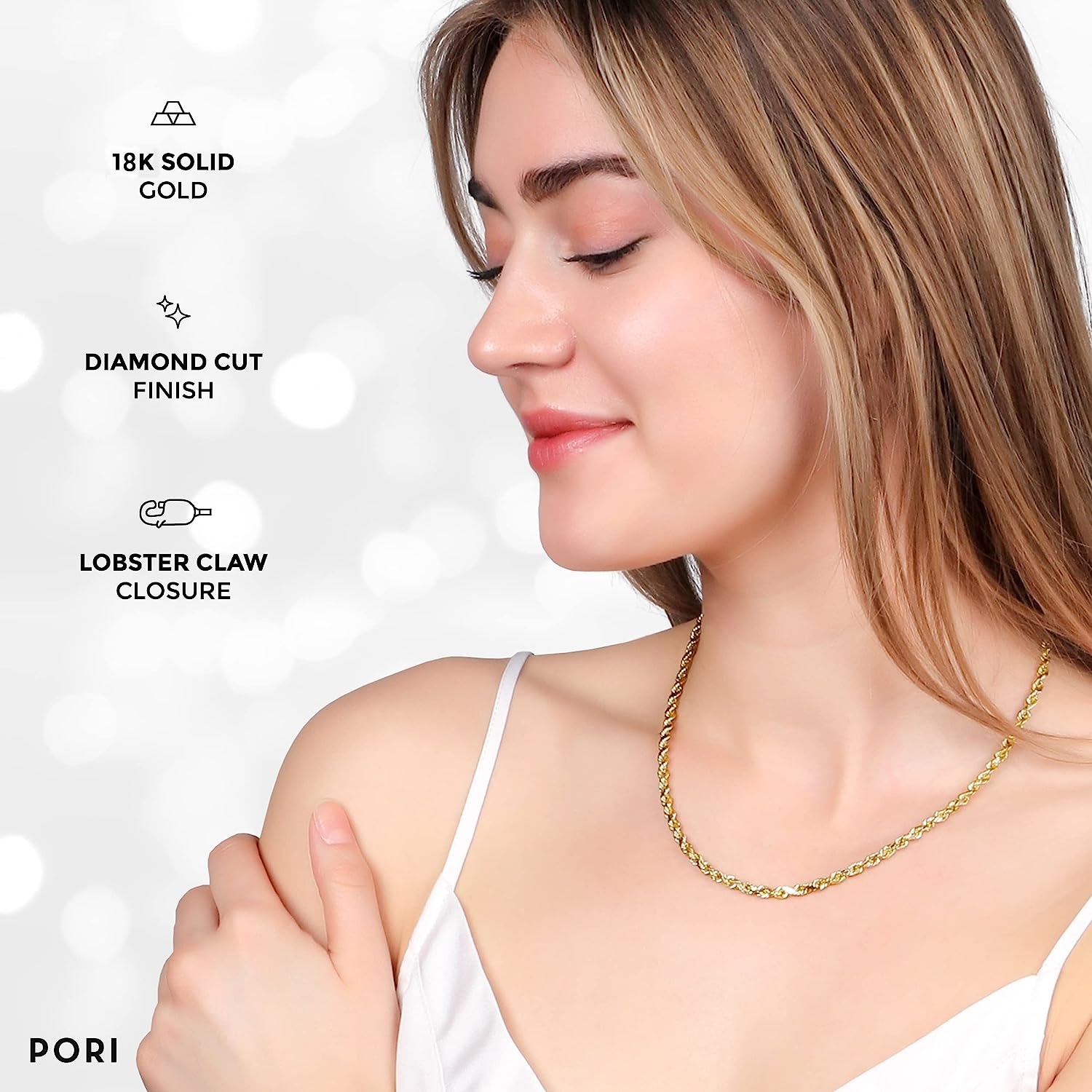 PORI JEWELERS 18K Yellow Gold 1.5MM, 1.8MM, 2MM, 2.5MM, 3MM, 4MM, or 5MM Diamond Cut Rope Chain Necklace Unisex Sizes 16"-30"