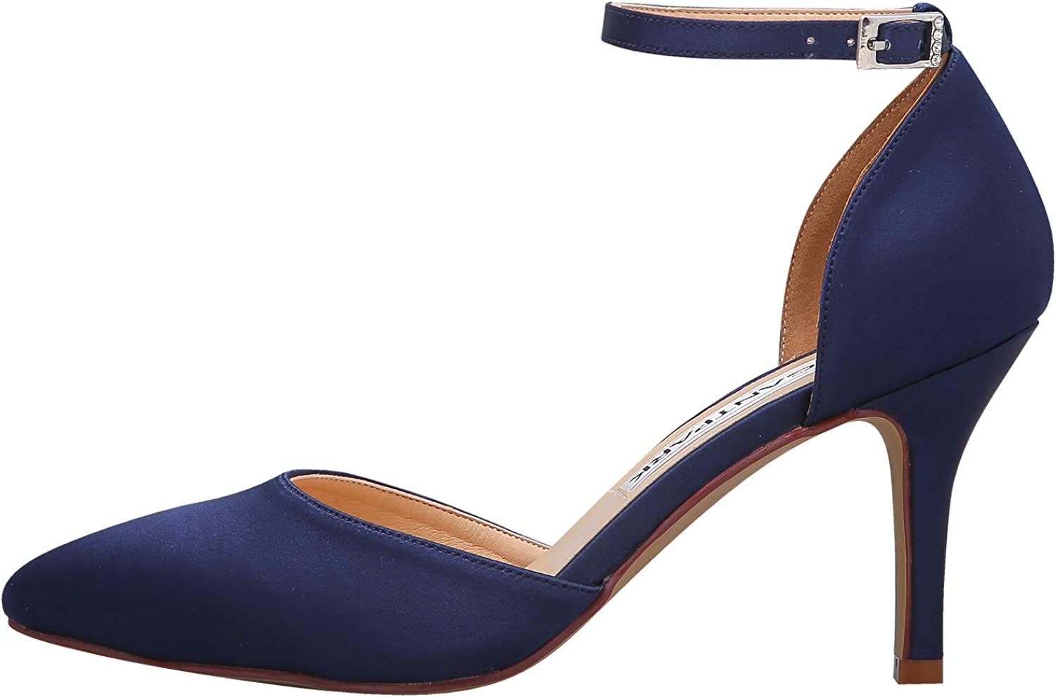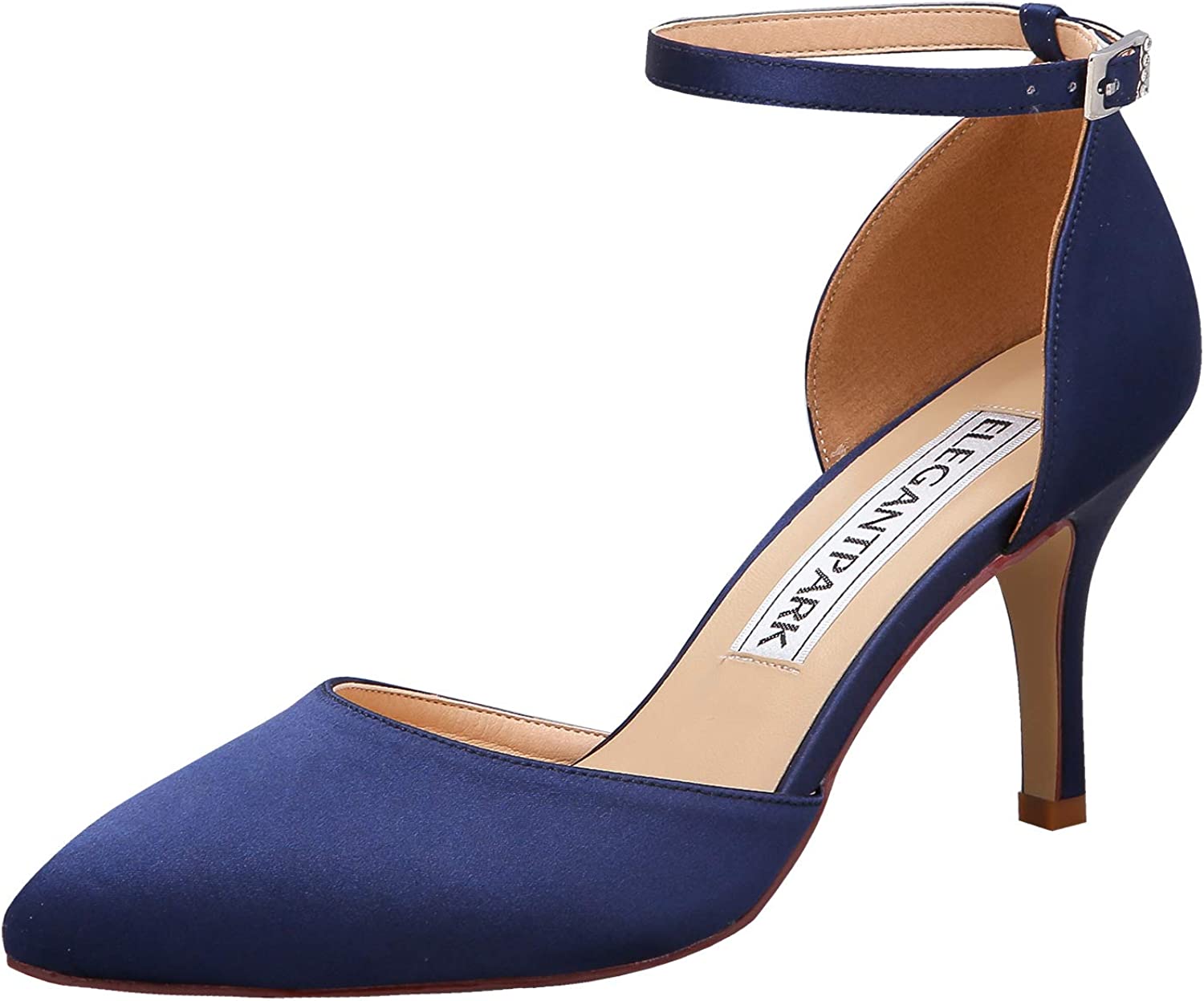 ELEGANTPARK Women Pointed Toe High Heel Pumps Satin Ankle Strap Wedding Bridal Evening Party Dress Shoes