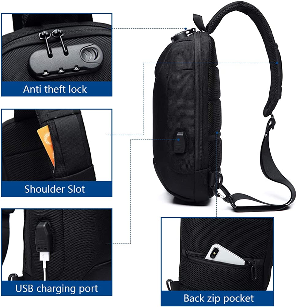 Anti Theft Sling Bag Shoulder Crossbody Backpack Waterproof Chest Bag with USB Charging Port Lightweight Casual Daypack