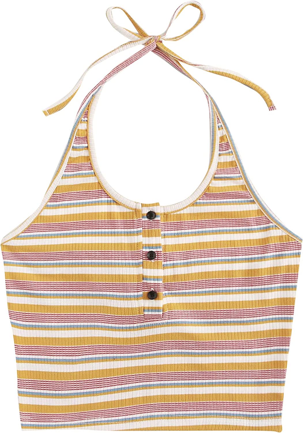 SweatyRocks Women's Casual Sleeveless Vest Halter Crop Top Cami Tank Tops