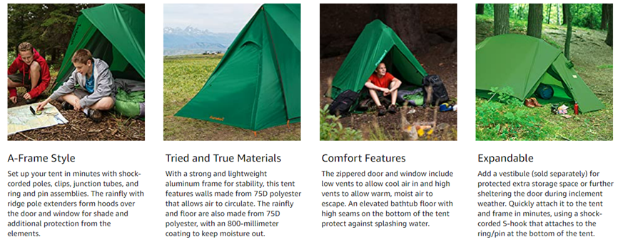 Eureka!'s legendary A-frame tent was the first double-wall tent, combining a breathable inner body with waterproof rainfly. Clips make set-up simple. Eureka! found its humble beginnings in 1895 and today their camping gear gives you the freedom to have fun - from tents to cooking systems, and sleeping bags to camp furniture - reliable, easy-to-use, and packed with features campers care about.