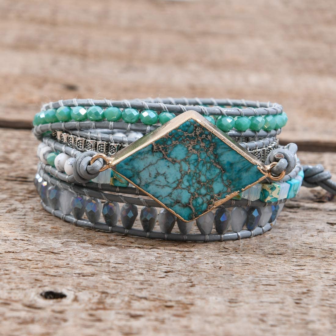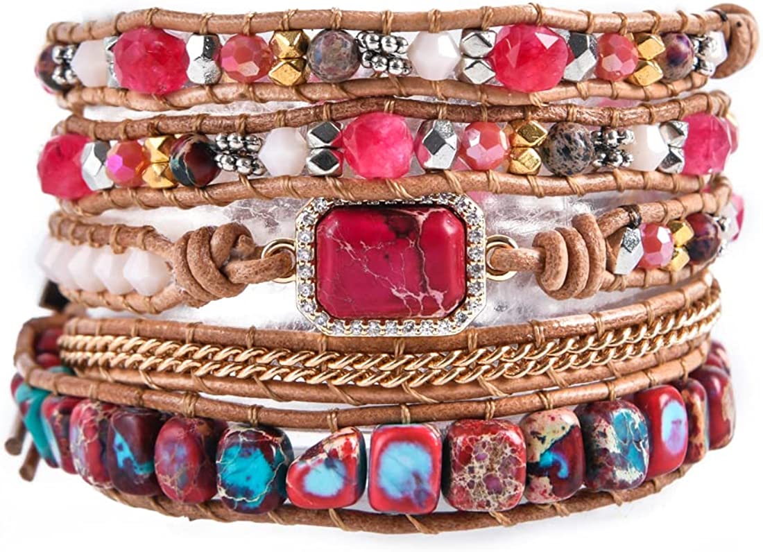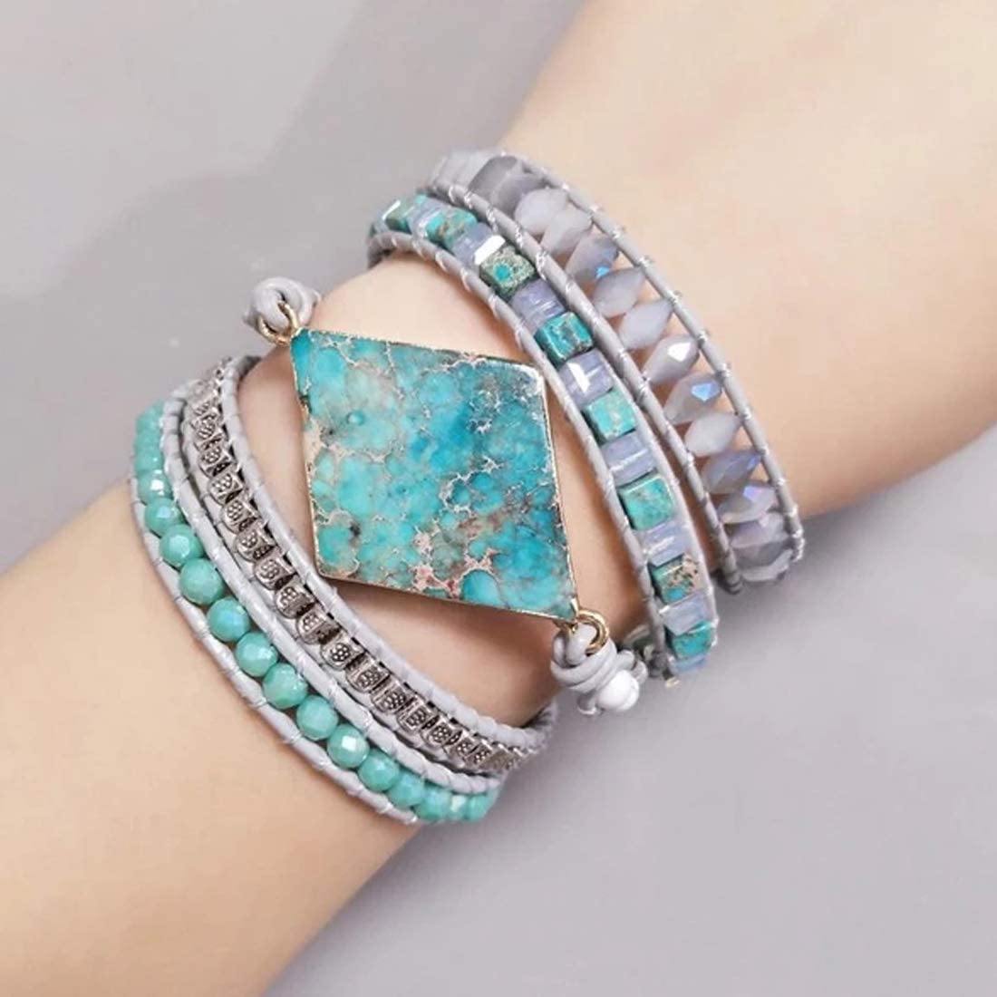 YGLINE Boho Handmade Wrap Leather Tube Crystal Stone Bracelet for Women