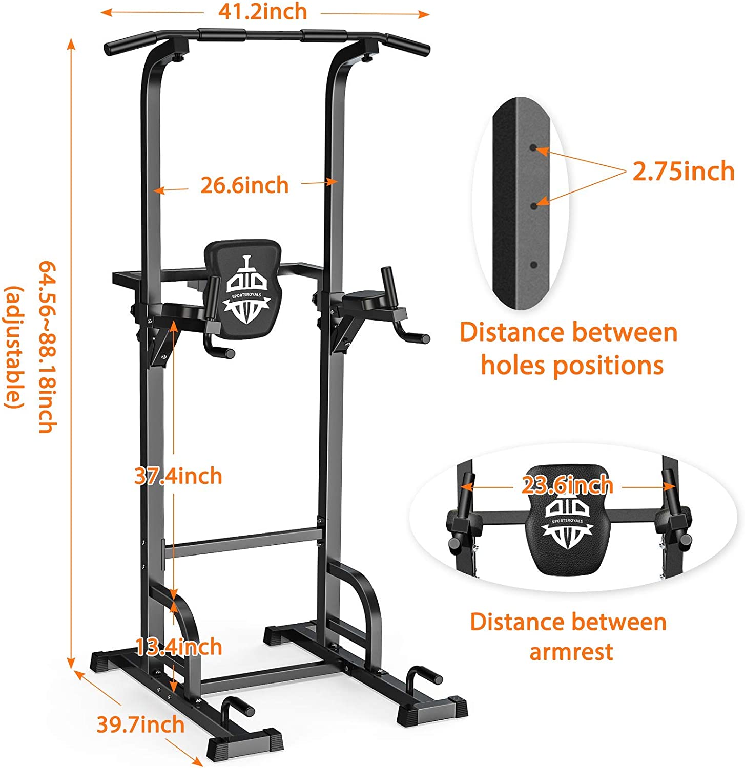 Sportsroyals Power Tower Dip Station Pull Up Bar for Home Gym Strength Training Workout Equipment, 400LBS.