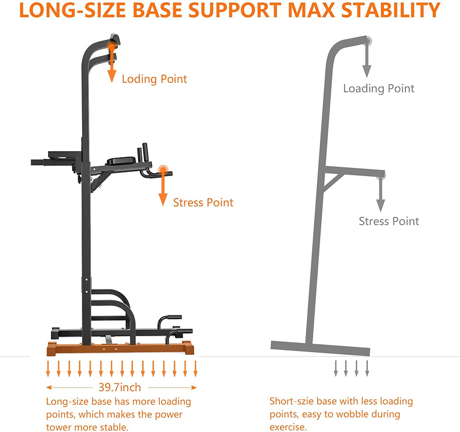 • 【Sturdy Construction】Comes with a 14-gauge heavy square steel frame constructed with scratch-resistant coat finish, our power tower can hold riders weight up to 400lbs and withstand long term use.