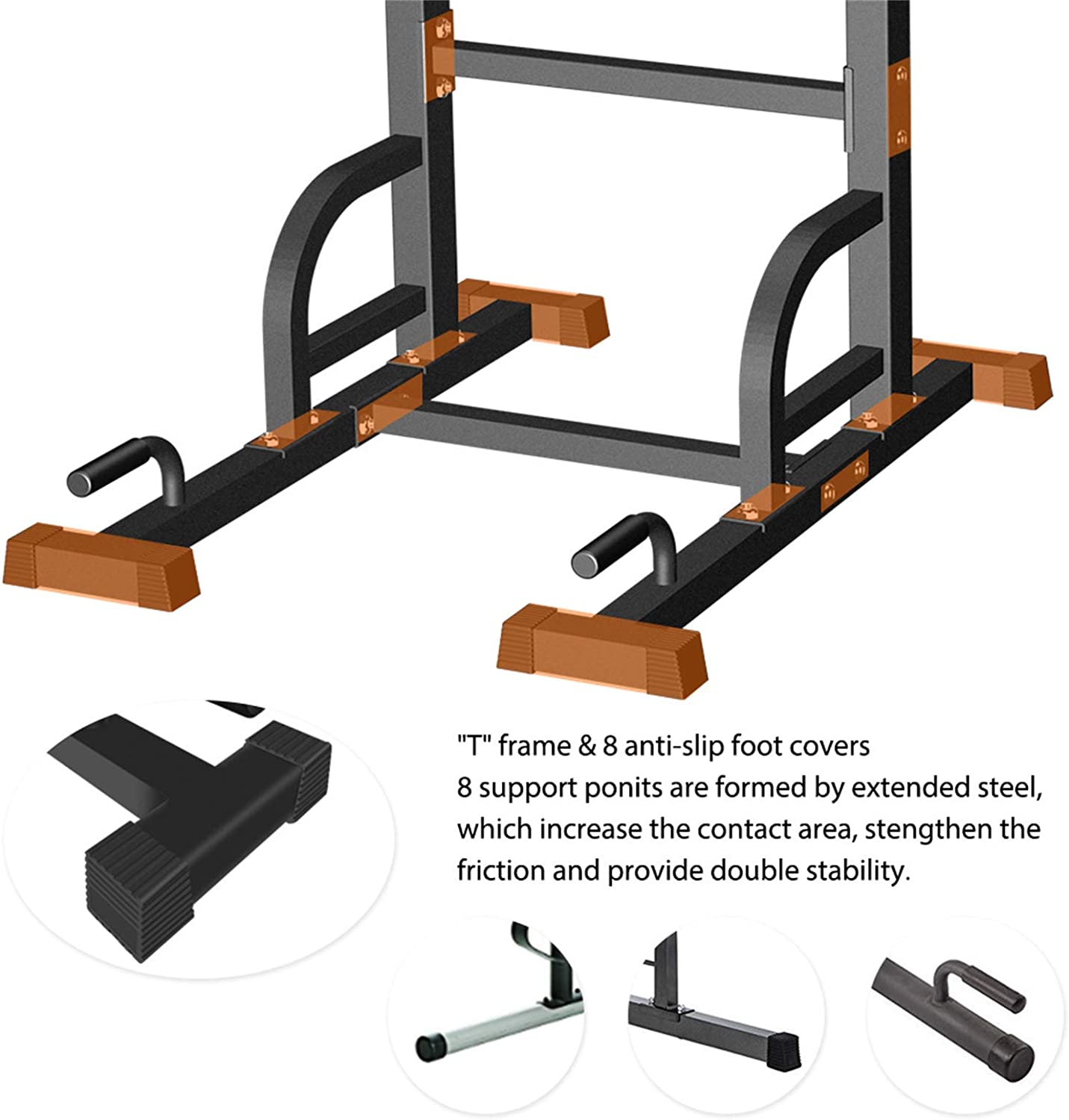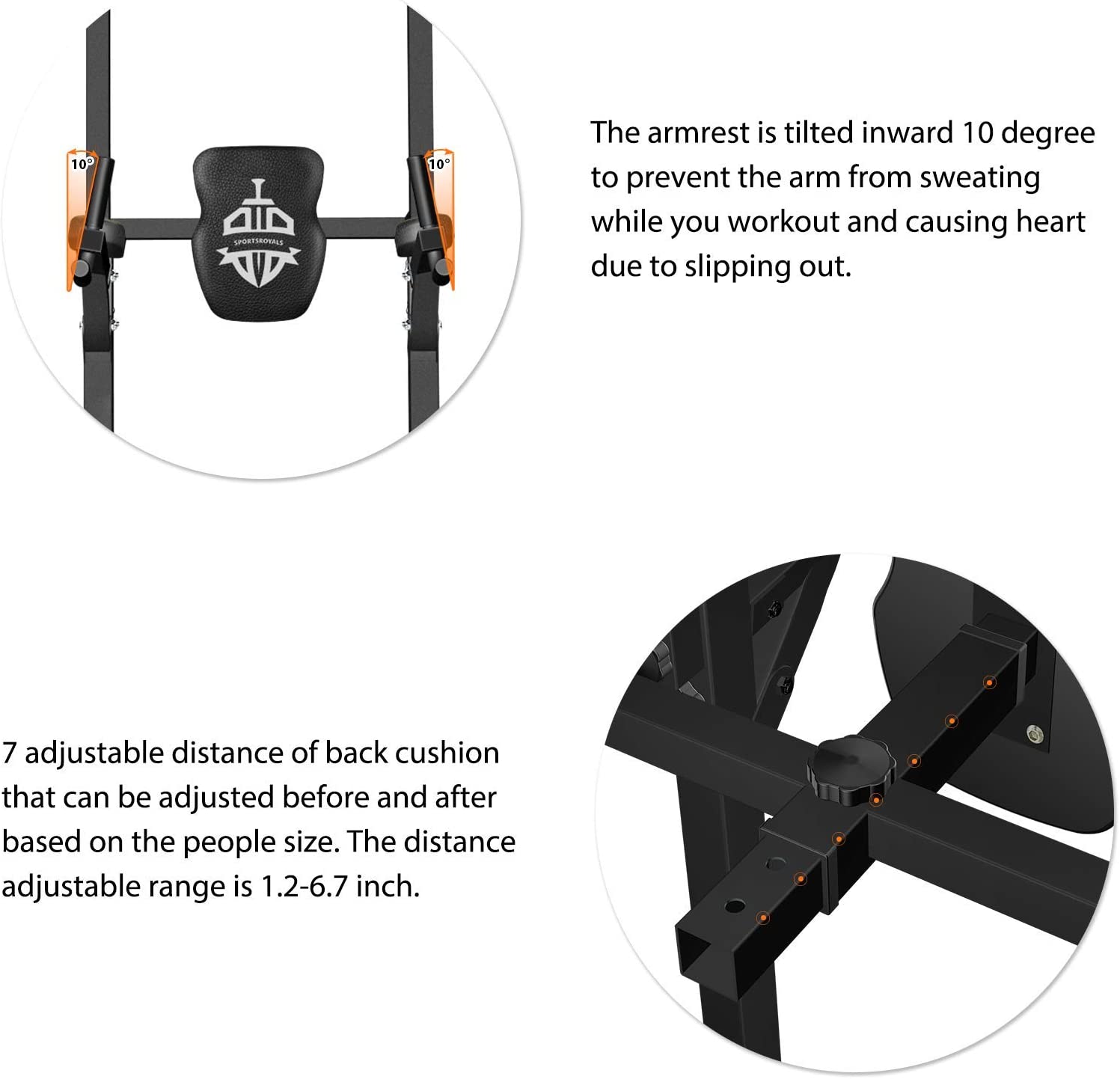 • 【Ergonomic Design】Humanized design with PU pads for elbow protection, and the armrest of this dip station is slightly inclined towards the inside 10 degree to prevent the elbow from slipping off.