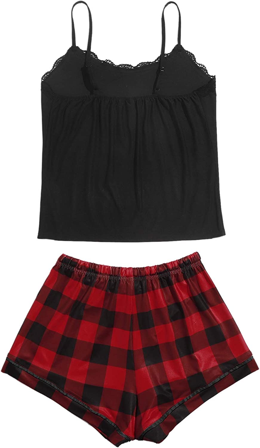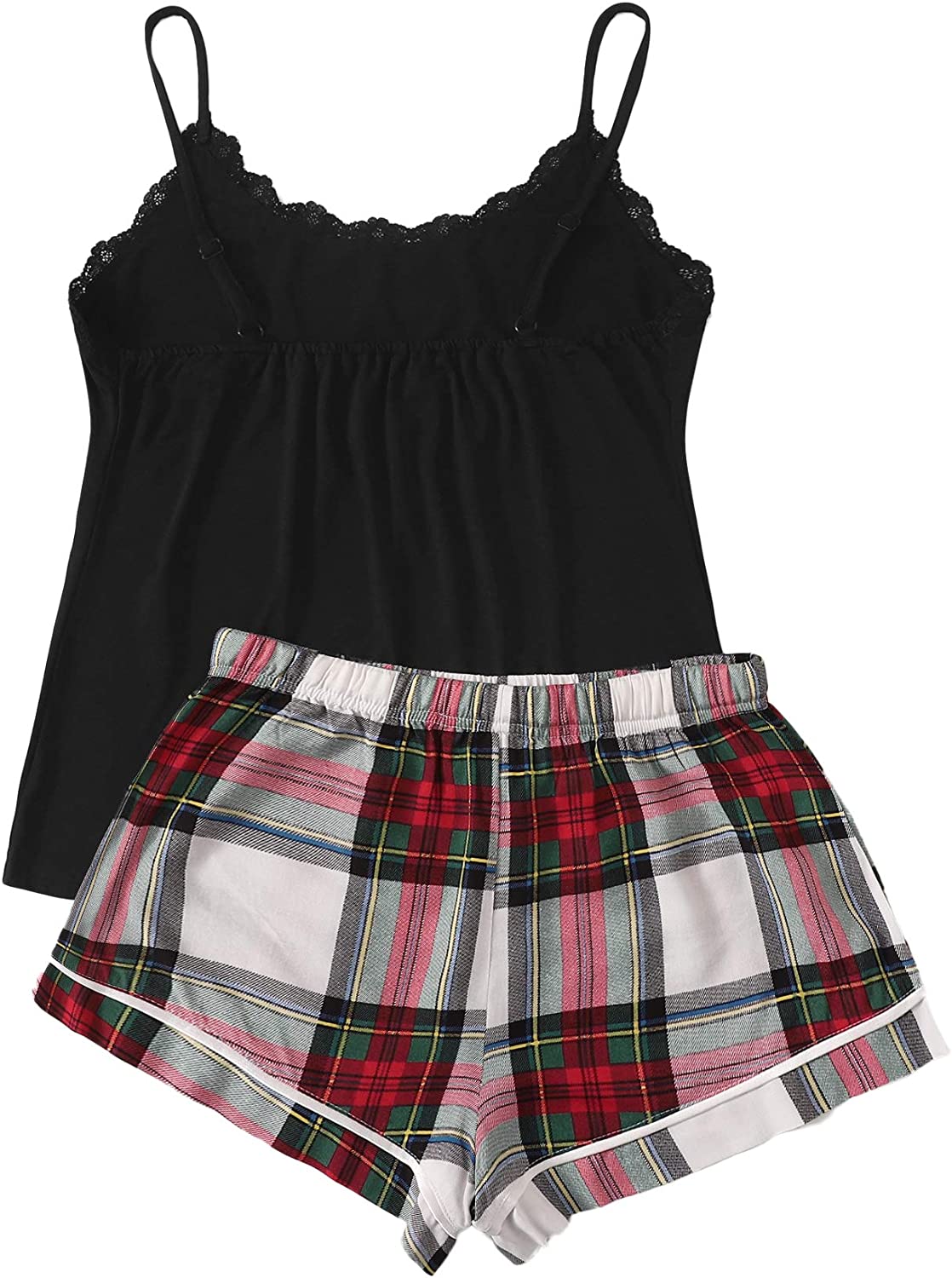 SweatyRocks Women's Sleepwear Set Plaid Print Cami Top and Elastic Waist Short Pajama Set