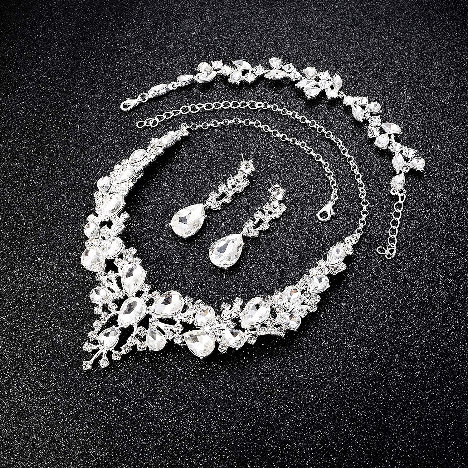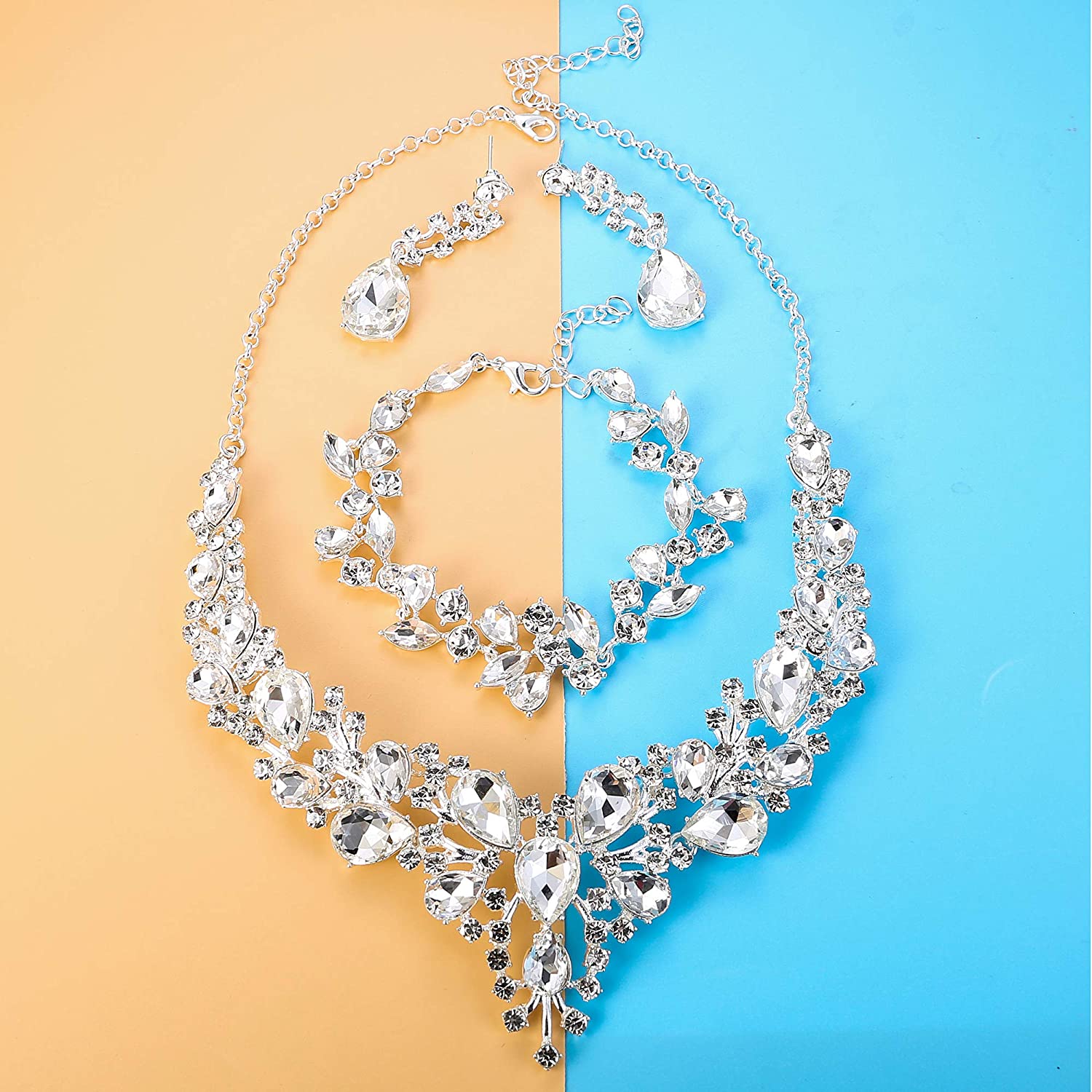 • RHINESTONE JEWELRY SIZE-- Crystal Necklace Adjustable Chain Length 39cm (15.35’’)- 45cm (17.72’’), Bridal Drop Earrings Length: 5cm(2’’). Teardrop Bracelet Length: 19cm(7.4’’), With 5cm (1.97’’) Extension Chain, Easy To Adjust, No Worry About Size Problem.