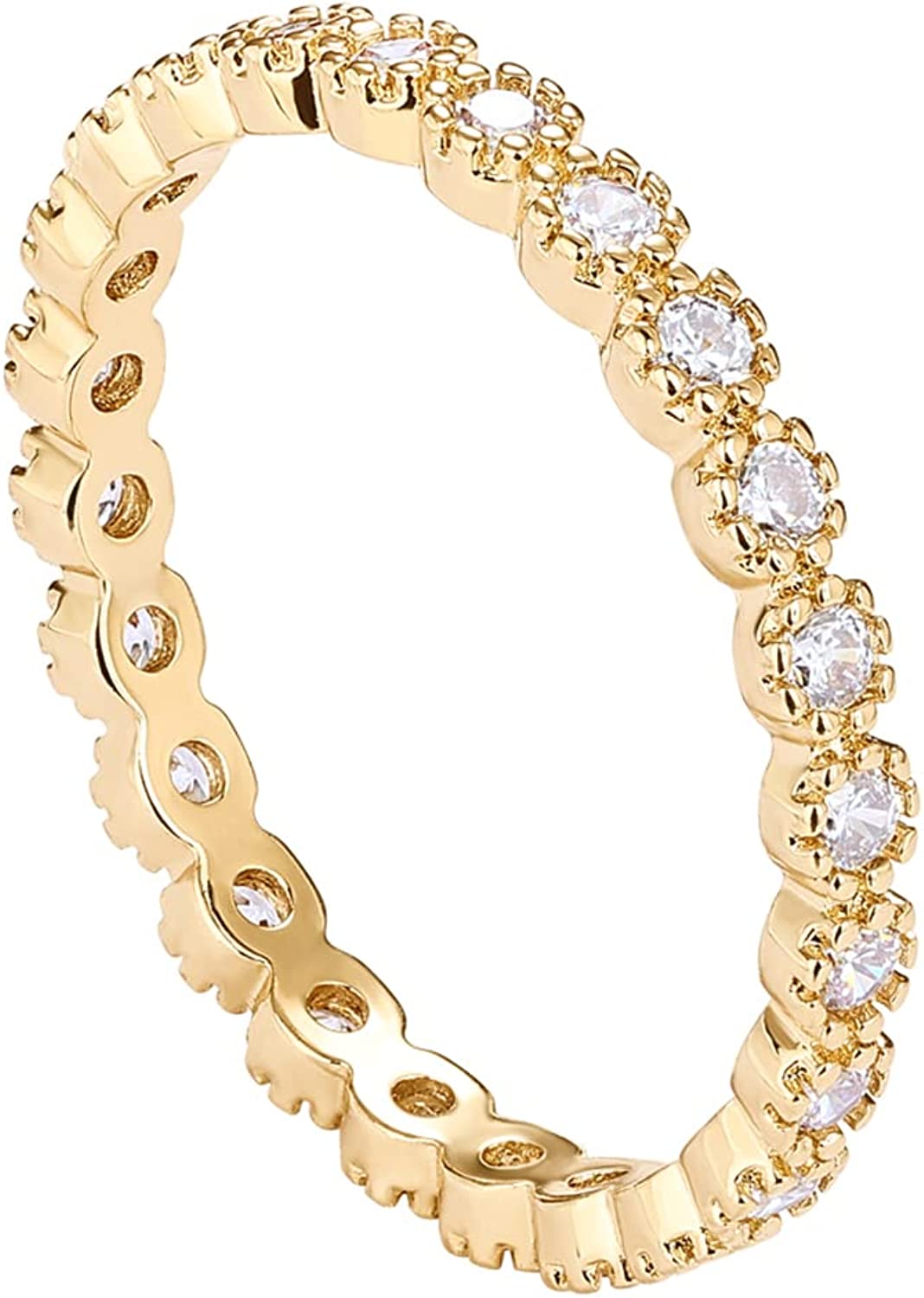 PAVOI 14K Gold Plated Rings Cubic Zirconia Band | Marquise Milgrain Eternity Bands | Gold Rings for Women