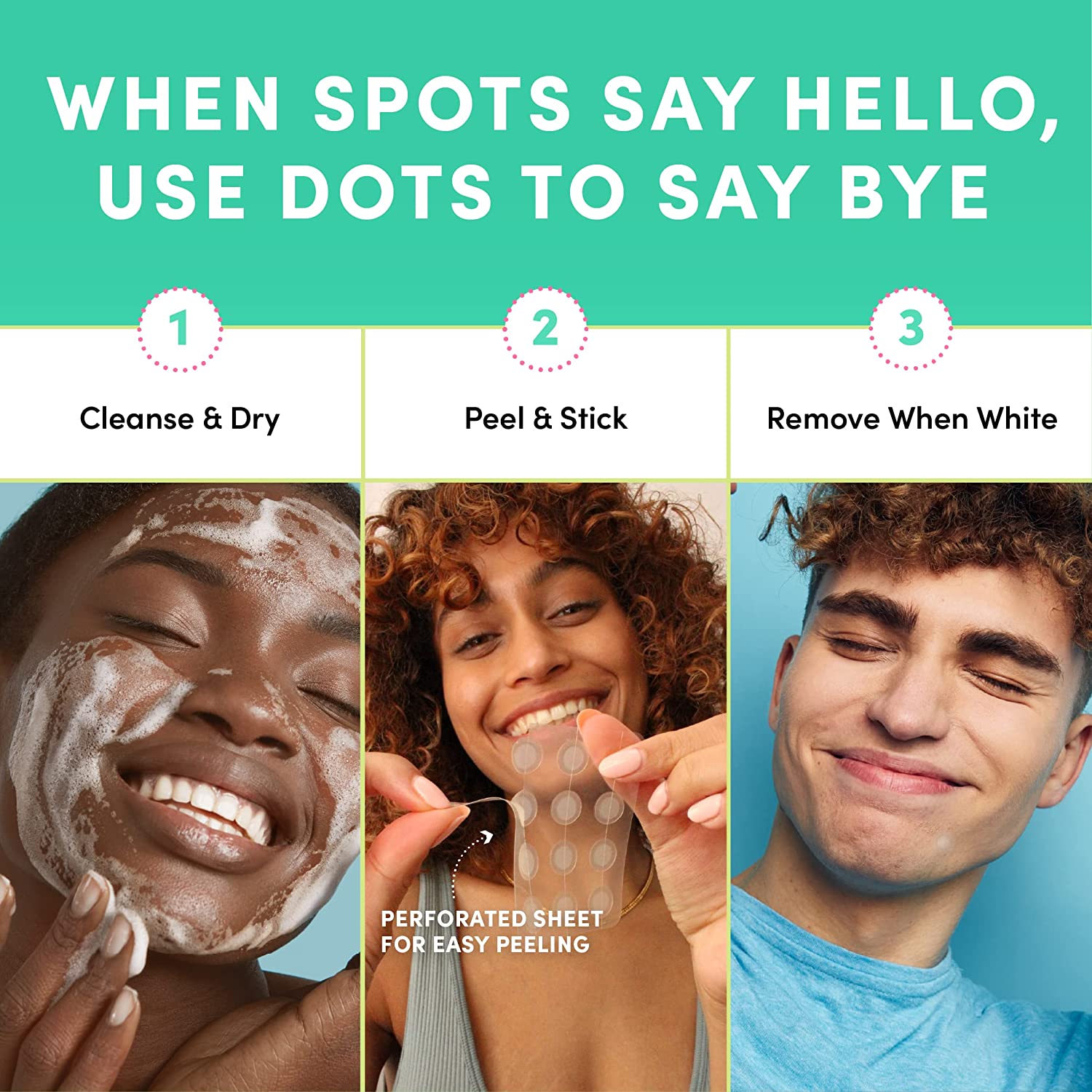 VISIBLE RESULTS - Dots for Spots blemish patches act as a protective cover to prevent picking, touching or popping of sensitive skin. They also work to minimize redness and the appearance of active breakouts.