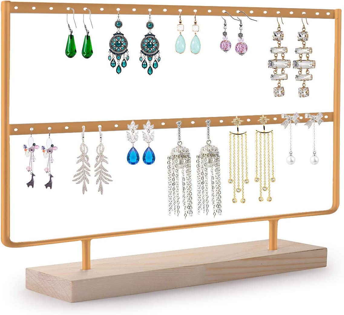 • 46 Holes FOR EARRINGS- This jewelry rack can hold up to 22 pairs of earrings . You’ll be able to hang up your favourite studs, dangle earrings, and hoops with ease. No longer do you need to worry about losing the backs of your earrings. This holder can accommodate push backs, screw backs, butterfly backs, and locking backs.