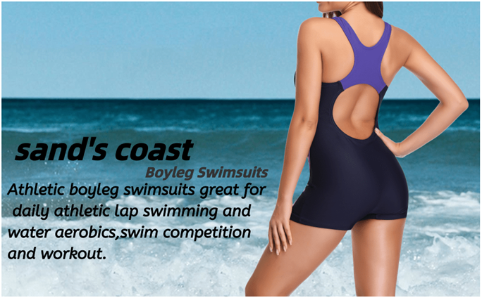 sand's coast Womens Boyleg One Piece Athletic Swimsuits with Shorts Sport Lap Bathing Suit Racerback Swimwear for Teens Girl