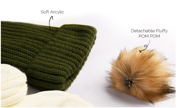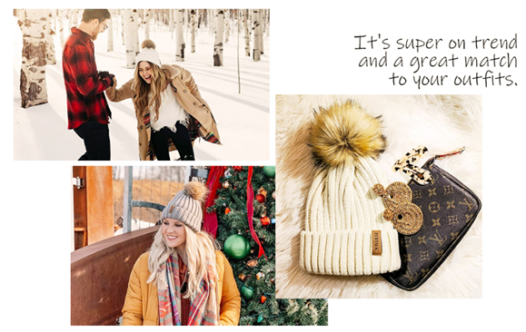 • ?PomPom Hat - The winter slouch hat with a fur pompom,this puff ball is bigger,super cute and removable.We use the same color and raccoon fur faux fur pompom as the hat when they combine together will look matched.The pom pom snaps securely in place when you want to wear it, and is easily removable when you don't;