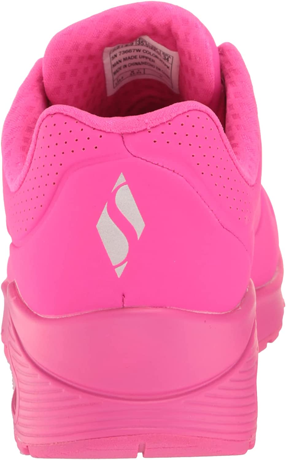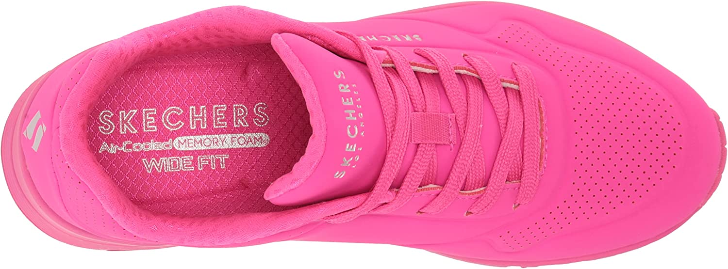 Vivid colors and classic sporty style combine in the SKECHER Street Uno - Neon Nights shoe. Smooth neon colored leather-textured 'durabuck' synthetic upper in a lace up classic fashion sneaker with stitching and perforation accents. Air Cooled Memory Foam insole, visible air cushioned midsole.
