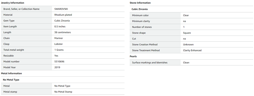 • Items delivered: 1 x Swarovski Attract Pendant Necklace for women, 14 7/8 inch rhodium plated metal chain featuring a sparkling square cut center stone, complete with Swarovski necklace box