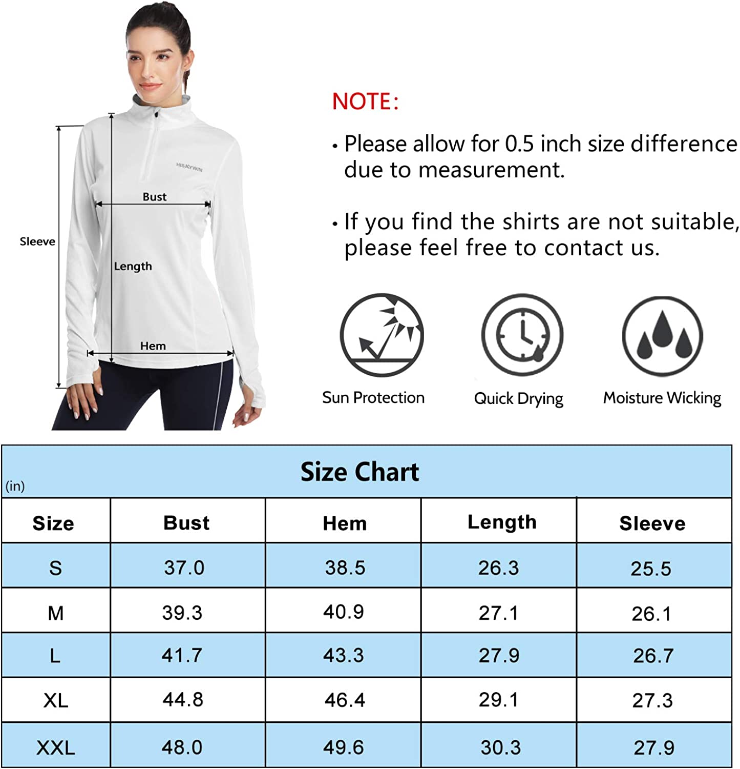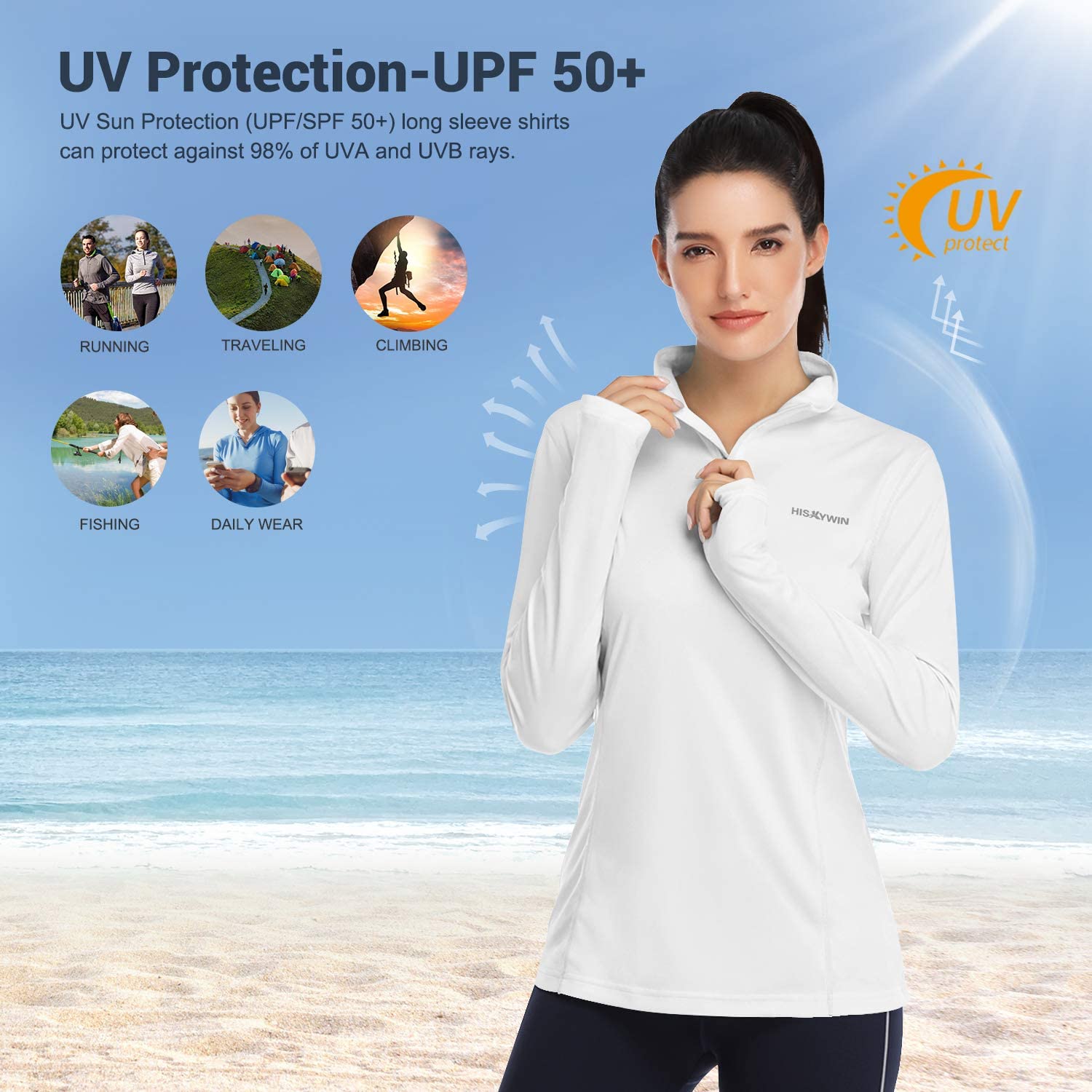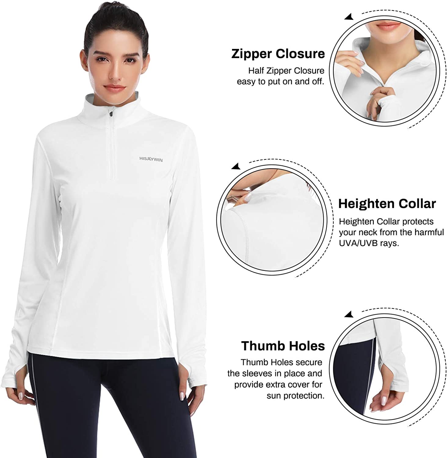 HISKYWIN Womens UPF 50+ Sun Protection Tops Long Sleeve Half-Zip Thumb Hole Outdoor Performance Workout Shirt
