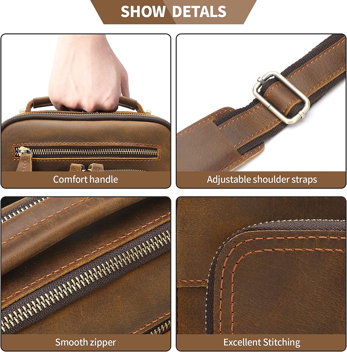 • Take It Anywhere: Appr. 8.3"L x 10.2" H x 3.9" W man purse boaste 5 zipper pockets. Adjustment max length is 4.27 feet for this men's shoulder bag. This leather men bag has extra pockets to store and organize your personal gear and tech gear. Perfect man leather bag for your daily use, business, travel leather messenger bag, outdoor, hiking and other activities. A perfect man purse leather great for gear in case of an emergency or for your edc!