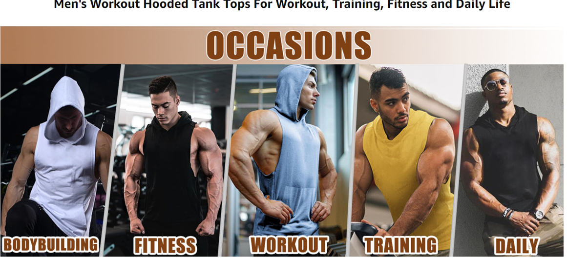 - Workout Hooded Tank Top: This sleeveless workout gym hoodie can show your strong arms and body shape perfectly.Whether for exercise or daily life, This sleeveless training hoodie is irresistible in the ensemble with jeans, classic trousers, track men's pants, joggers